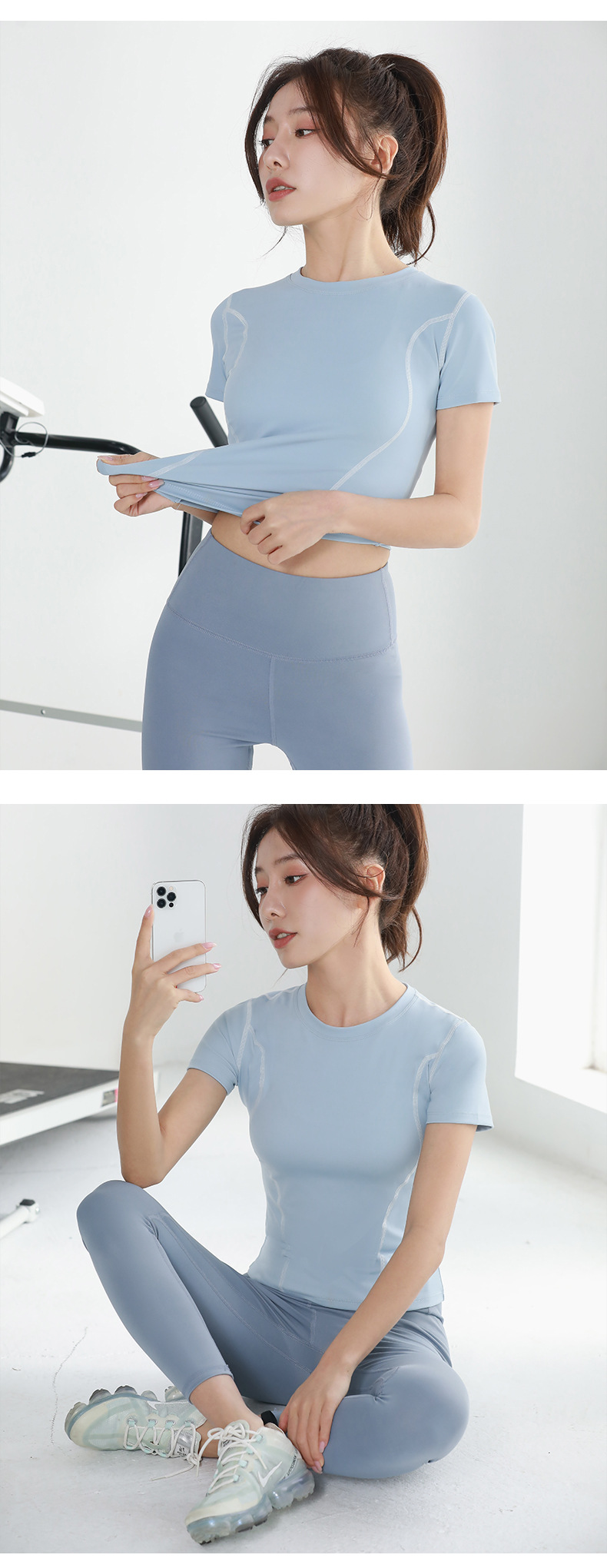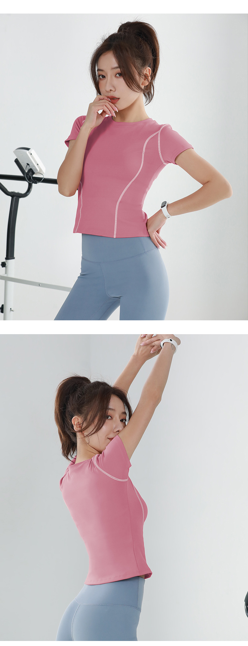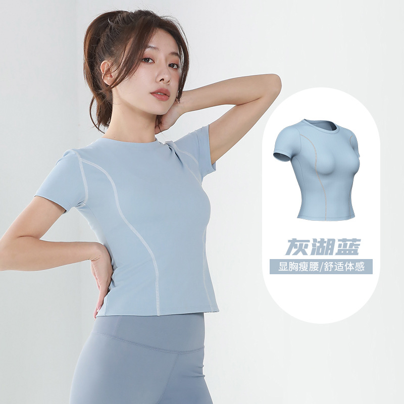 Juyitang 반팔 요가 탑 더블 아크 슬림 핏 슬리밍 빠른 건조 통기성 달리기 피트니스 의류 여성용 티셔츠스토어 가기