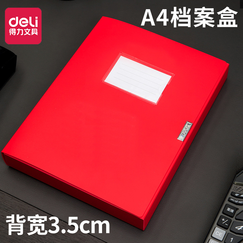 델리 63203 레드 파티 빌딩 파일 상자 35mm 사무실 보관 상자 데이터 상자 A4 플라스틱 파일 상자 도매스토어 가기