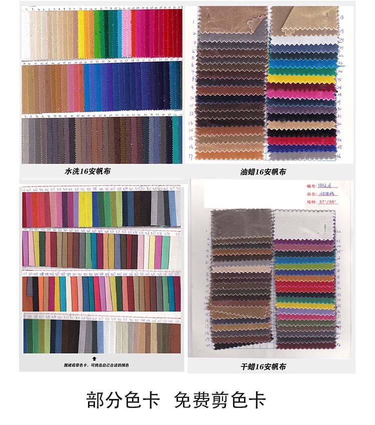 加厚牛仔布—水洗帆布—棉麻:亚麻—油蜡干蜡湿蜡(适合外贸电商)——棉布—牛津布:PU凃层(防水)等其他特殊面料。