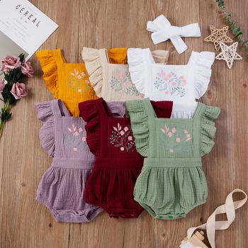 宝薪童装婴幼儿女宝外贸新款五色刺绣棉麻飞袖可开档哈衣爬服