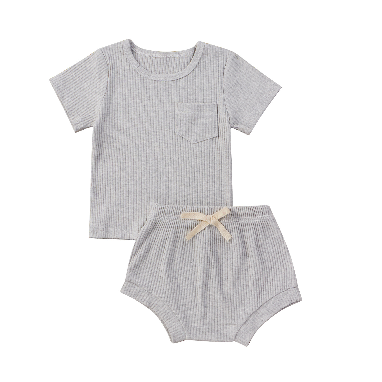 宝薪童装坑条新款短袖短裤两件套套装 男女童婴幼儿 外贸跨境