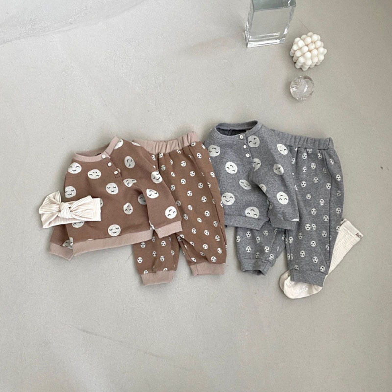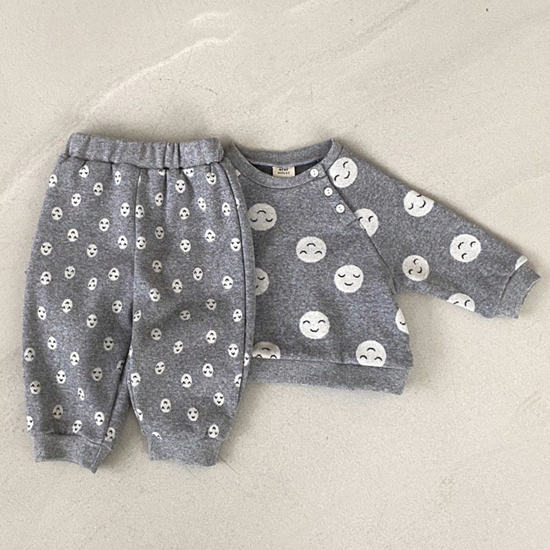 한국 아기 귀여운 외국 스타일 스마일리 캐주얼 세트 아기의 봄과 가을 만화 스웨트 셔츠 편안한 바지 투피스 세트스토어 가기