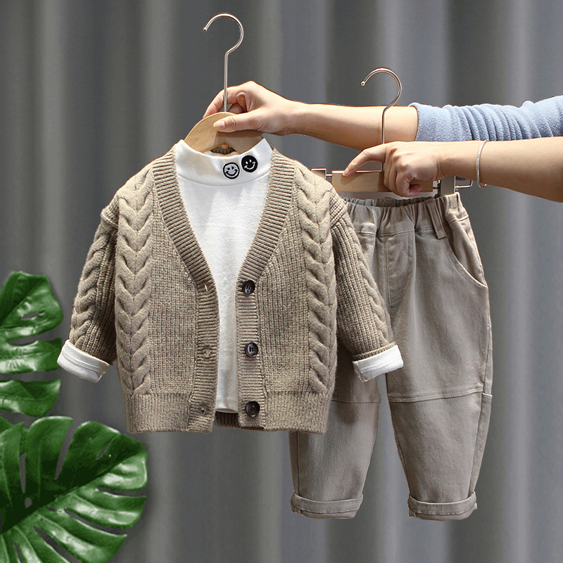 소년 3 피스 봄과 가을 서양식 아동 니트 스웨터 코트 아동복 봄과 가을 아기 스웨터 세트스토어 가기