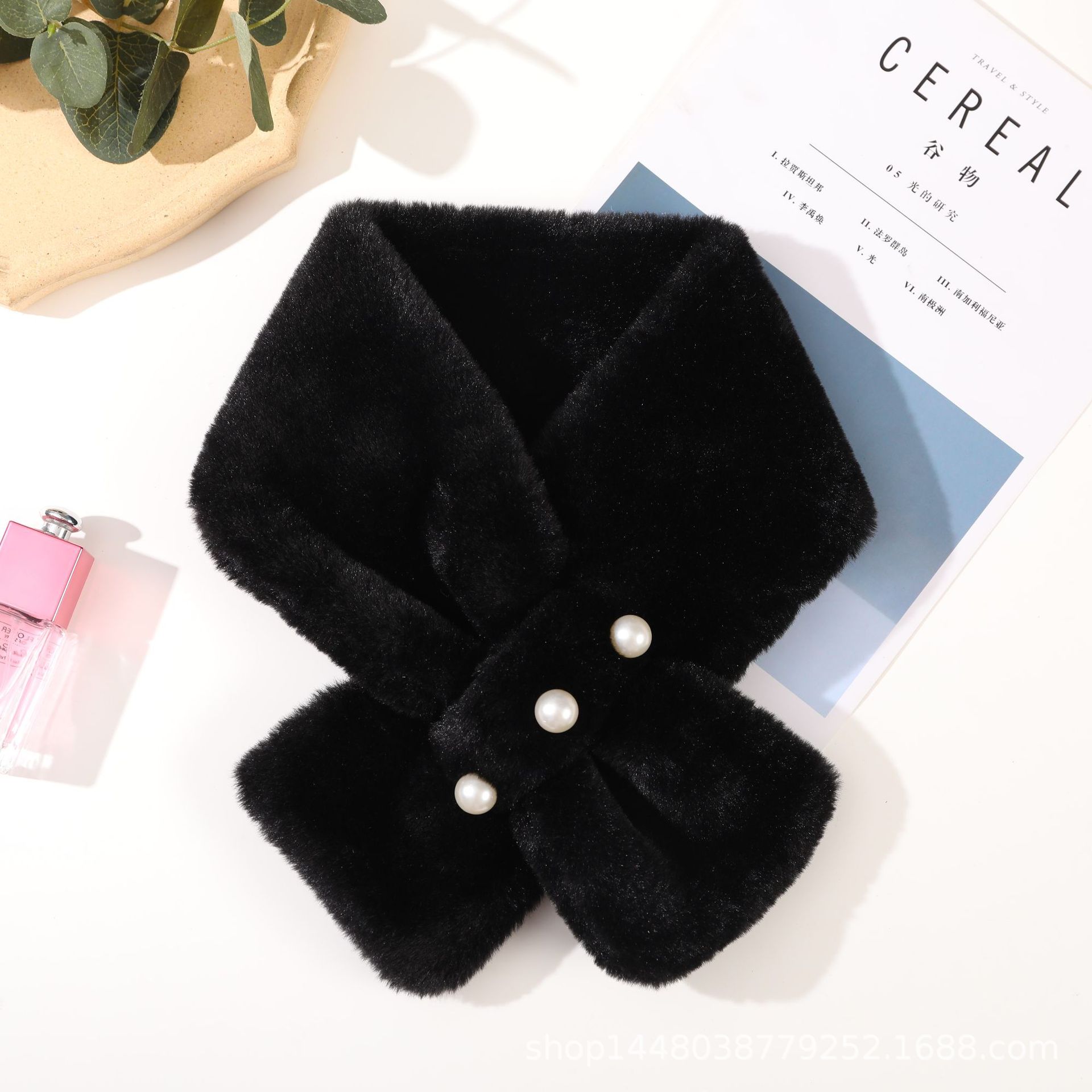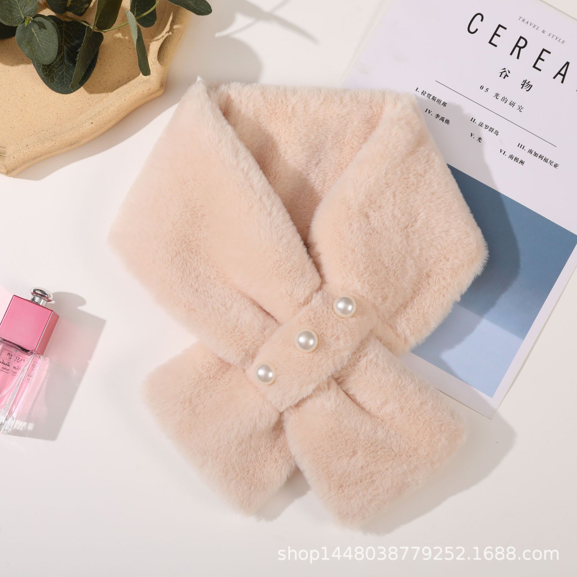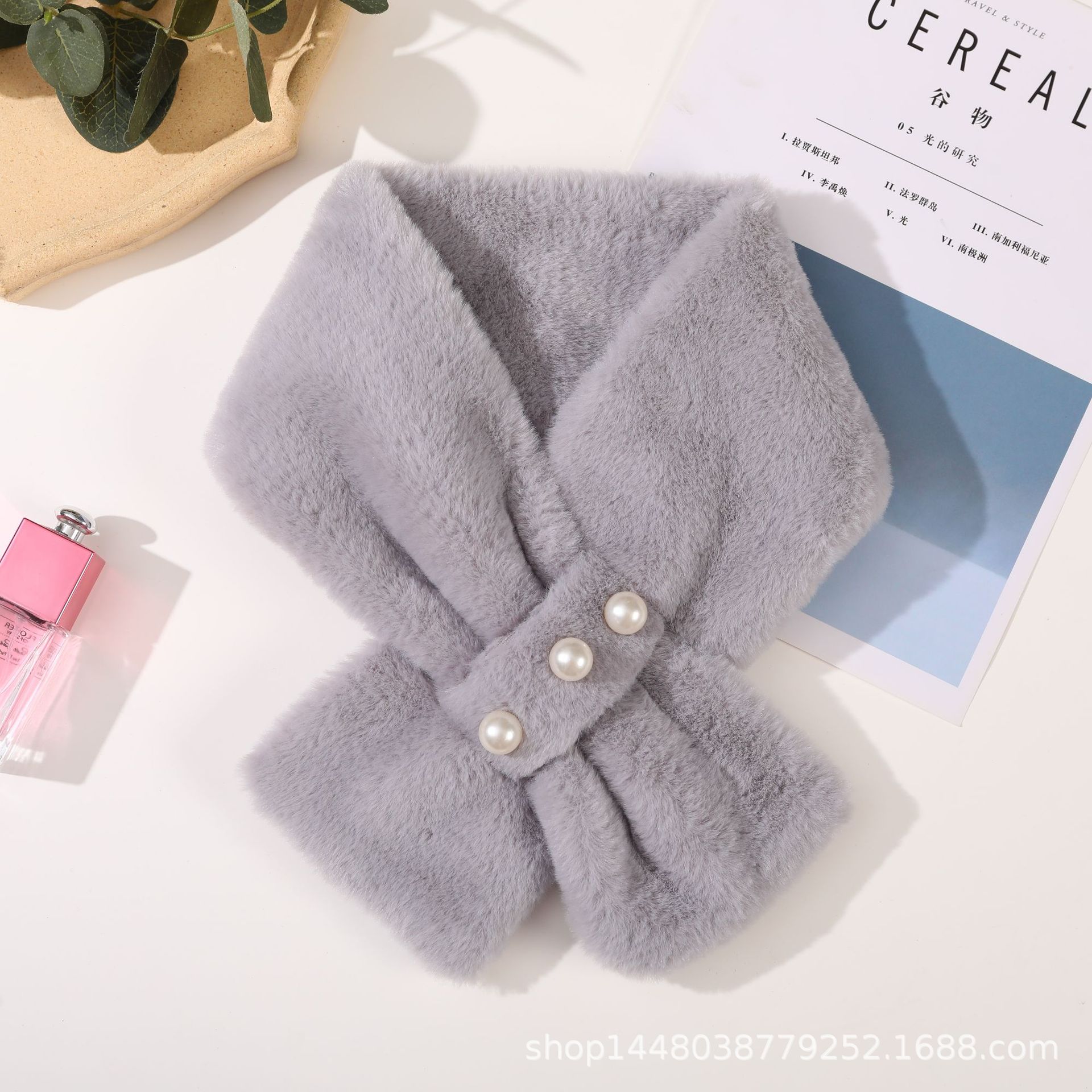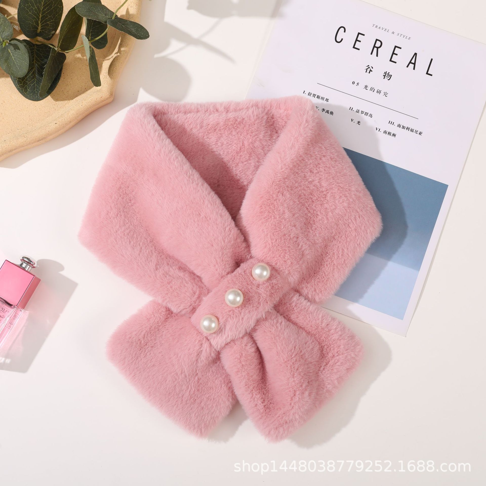 일본과 한국식 가짜 토끼 모피 진주 스카프 학생 봉제 스카프 가을과 겨울 여성 풀오버 방한형 야외스토어 가기