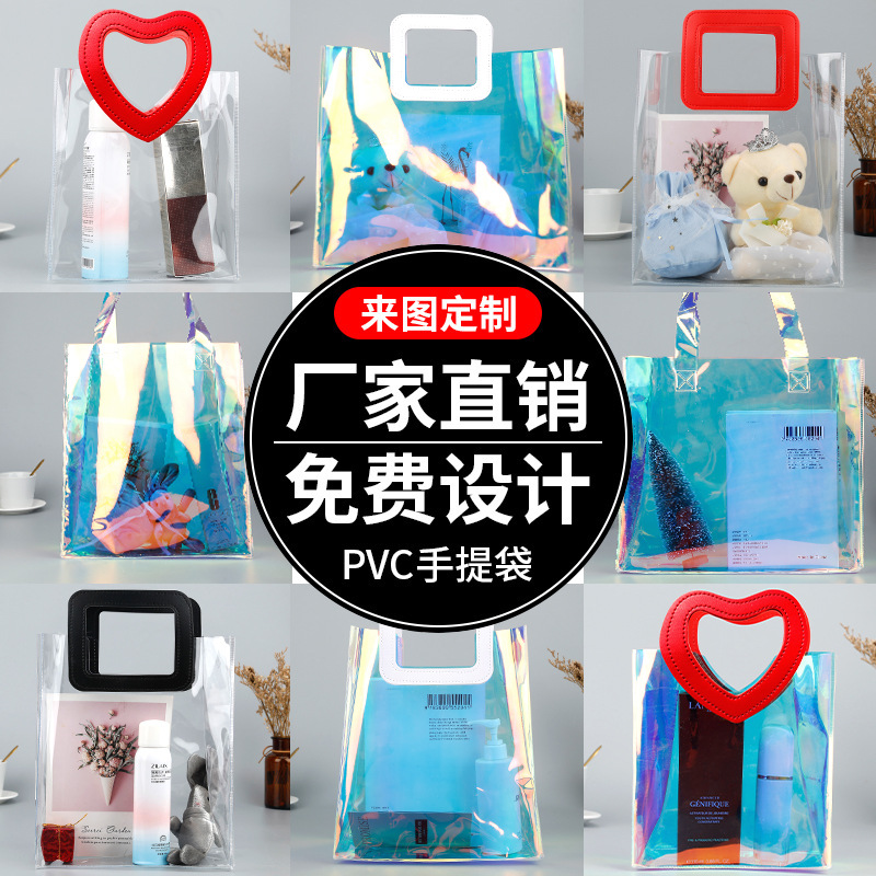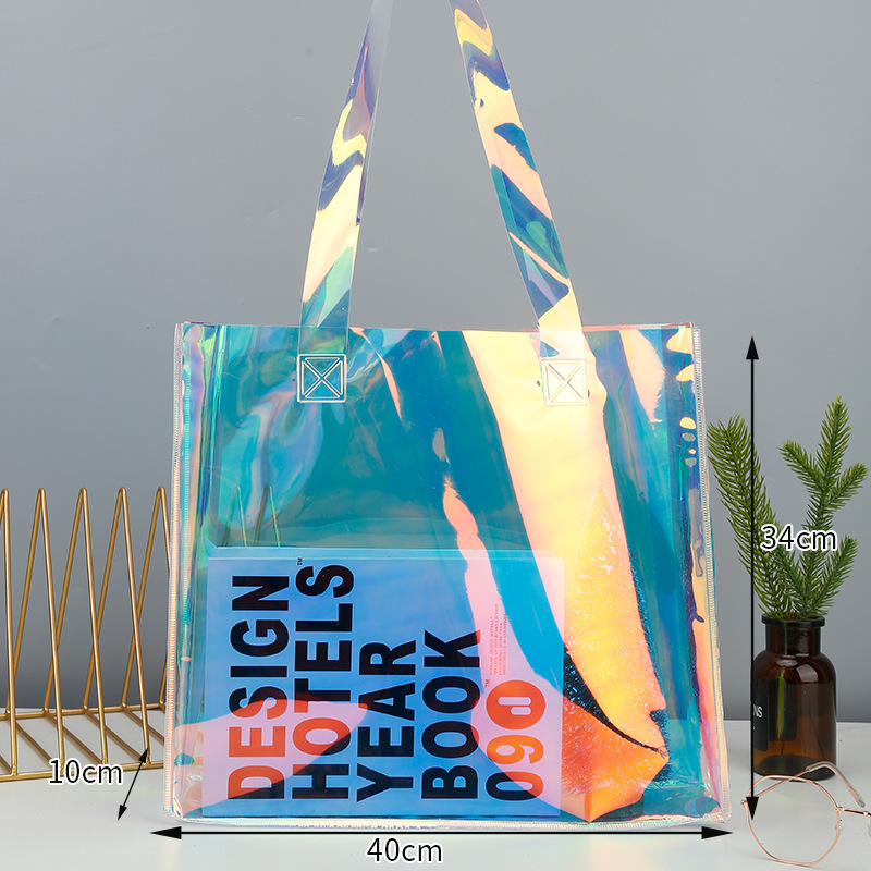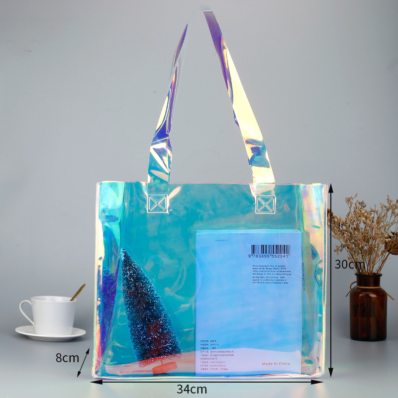 PVC 레이저 가방 맞춤형 로고 인쇄 투명 플라스틱 포장 선물 가방 패션 TPU 젤리 가방 레이저 핸드백스토어 가기
