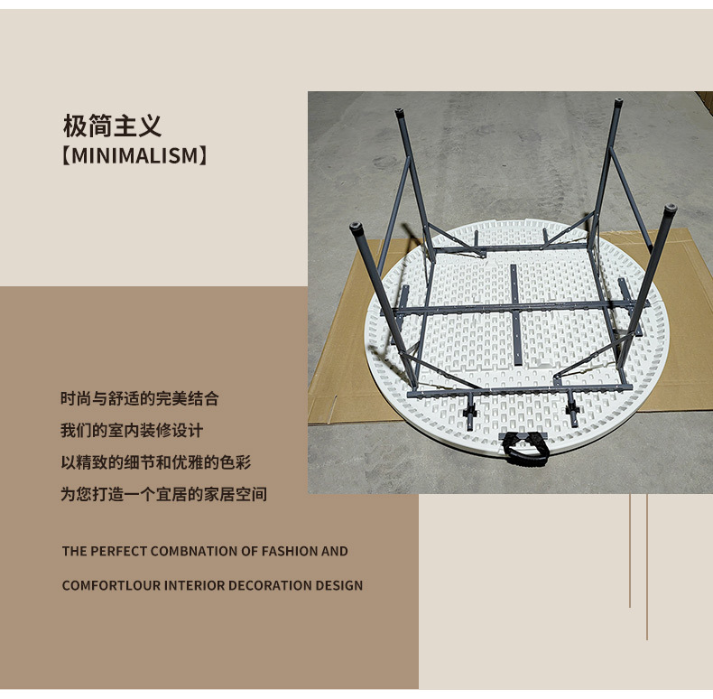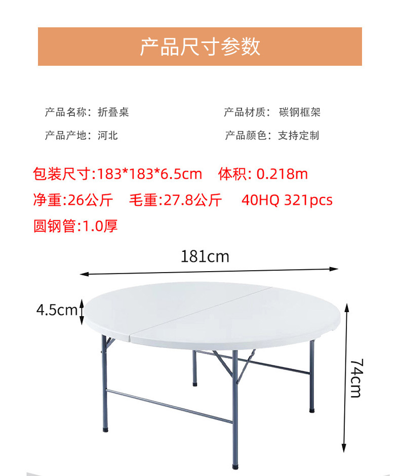 라운드 간단한 접이식 휴대용 식탁 호텔 레스토랑 대형 원형 테이블 야외 저녁 식사 플라스틱 가정용 식탁