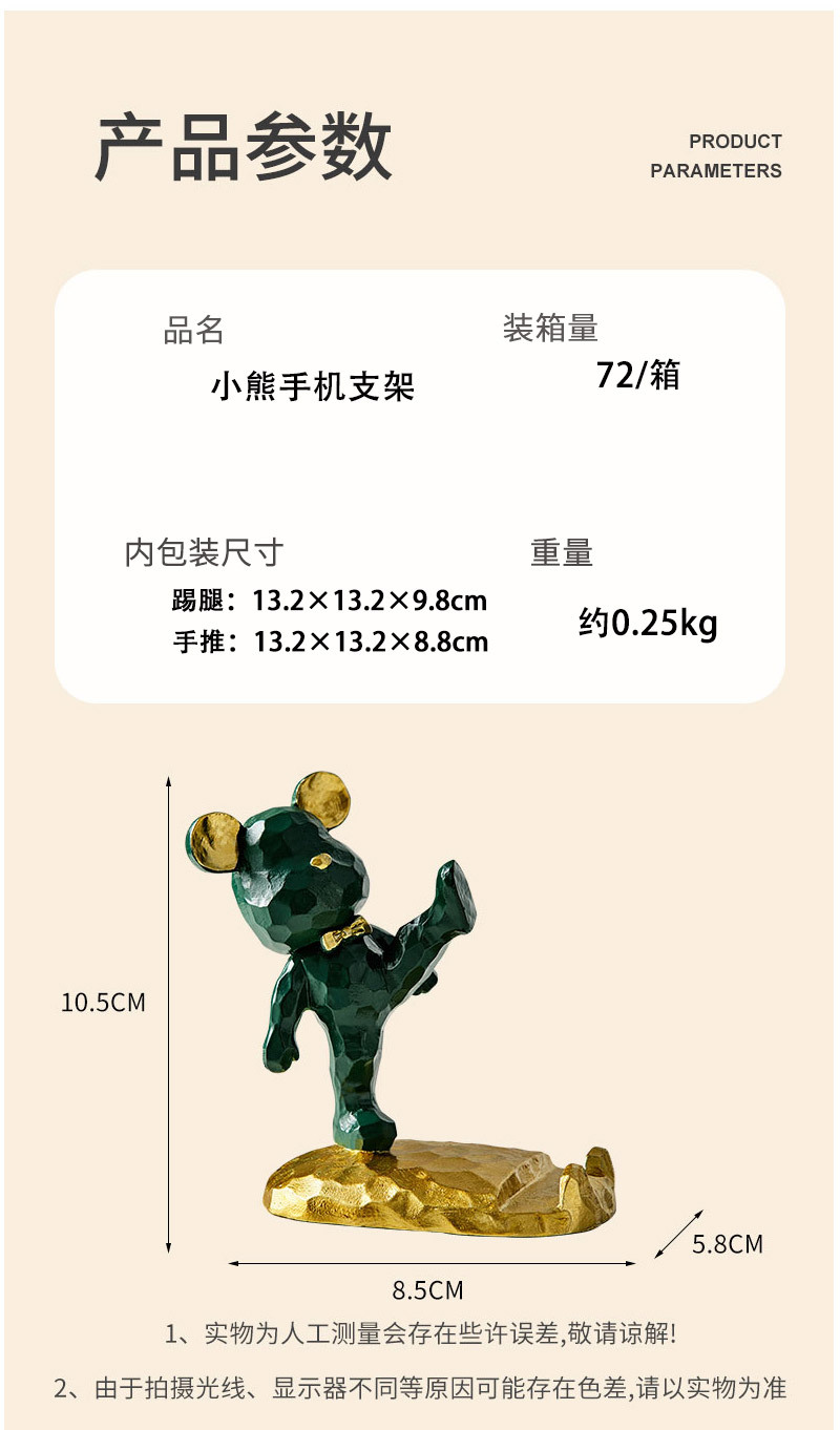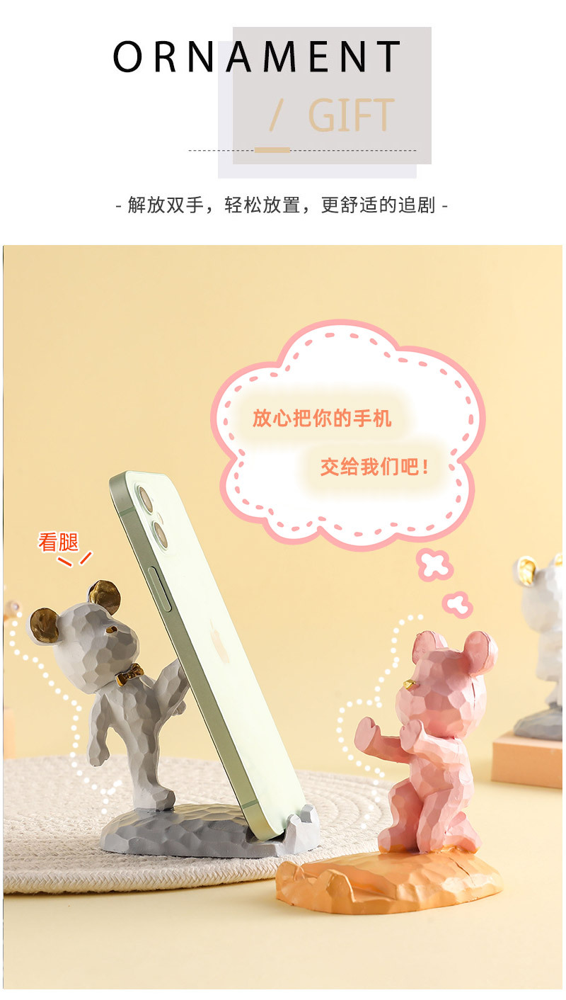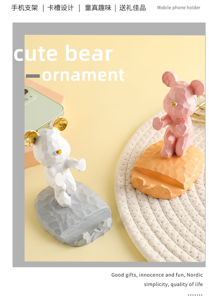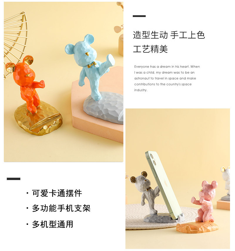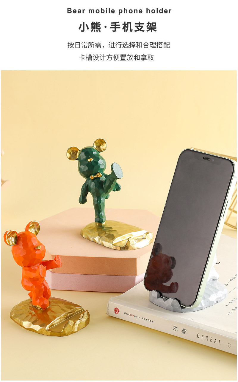 귀여운 폭력적인 곰 태블릿 전화 브래킷 수지 공예 데스크탑 장식 작은 장식품 선물의 세대