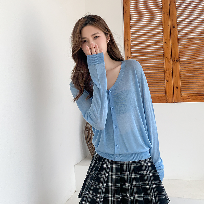여름 신상 아이스 실크 자외선 차단 니트 가디건 여성용 얇은 에어컨 셔츠 자외선 차단 셔츠 맞춤 제작스토어 가기