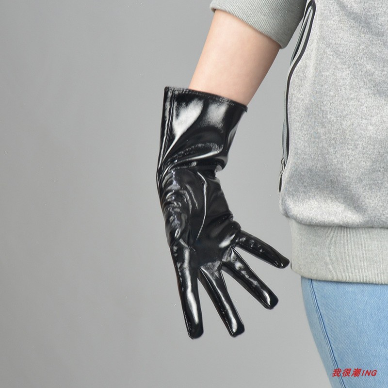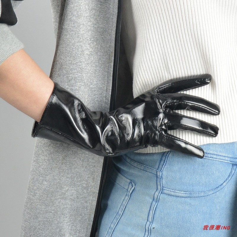 70cm 오버 엘보우 울트라 롱 페이턴트 가죽 장갑 여성용 밝은 블랙 모조 가죽 PU 따뜻한 퍼포먼스 사진 코스프레 우송료