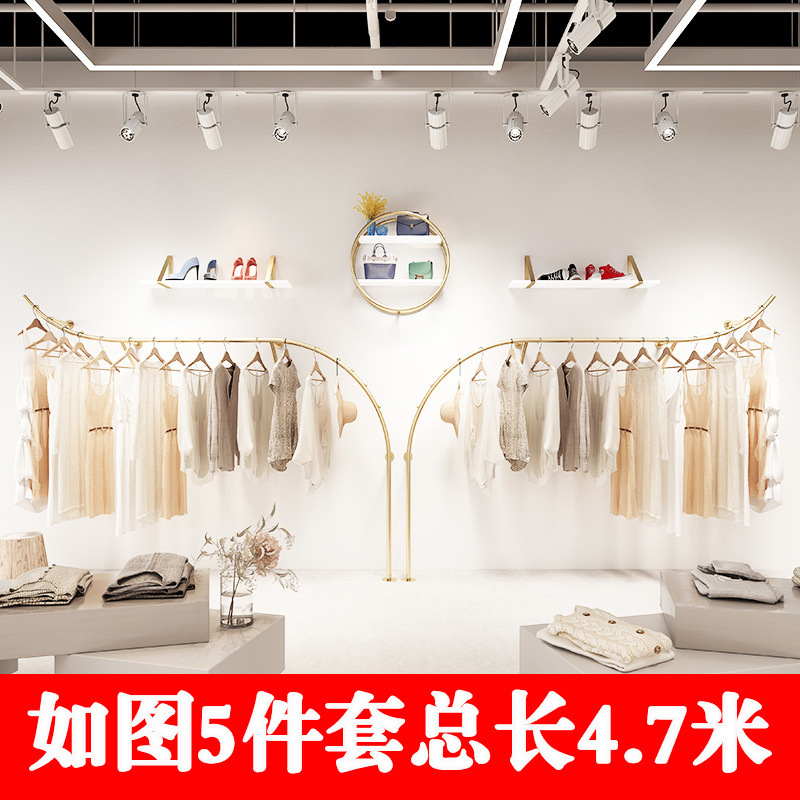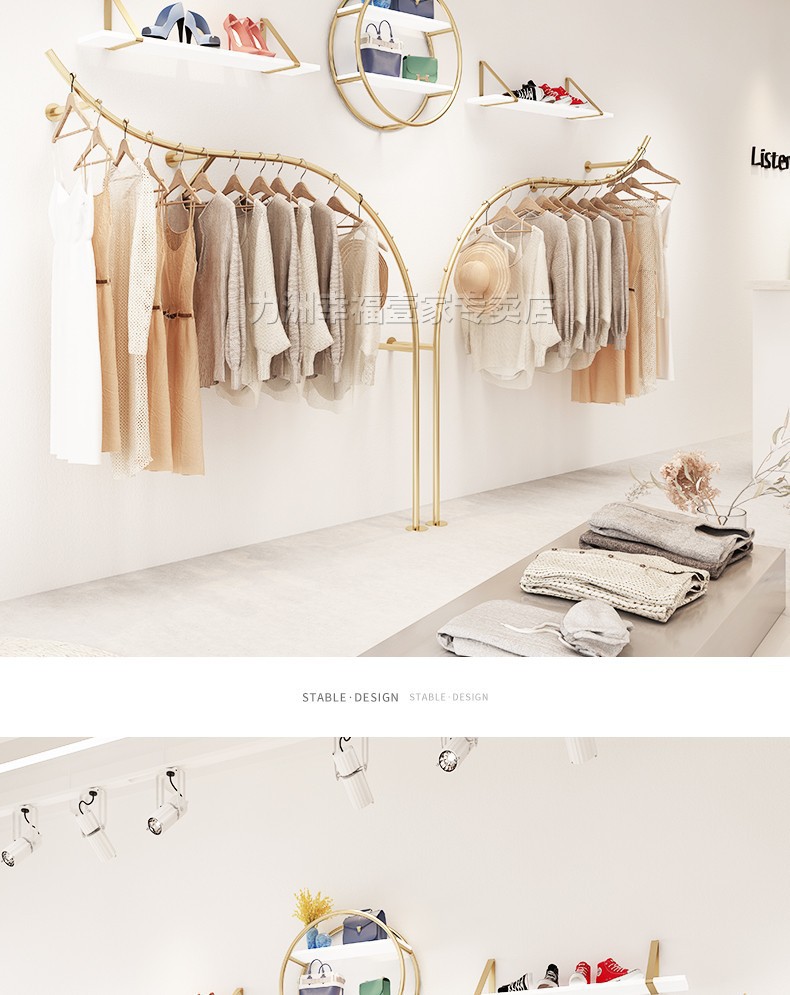 의류 매장 진열 랙 벽걸이 바닥-바닥 벽걸이 심플 폴 여성 의류 장식 선반 진열 선반스토어 가기