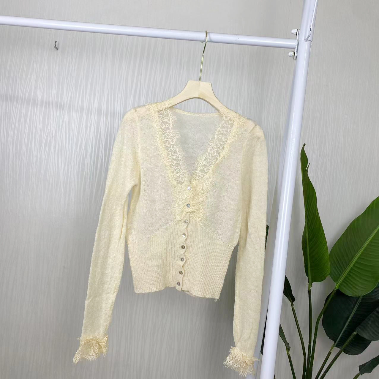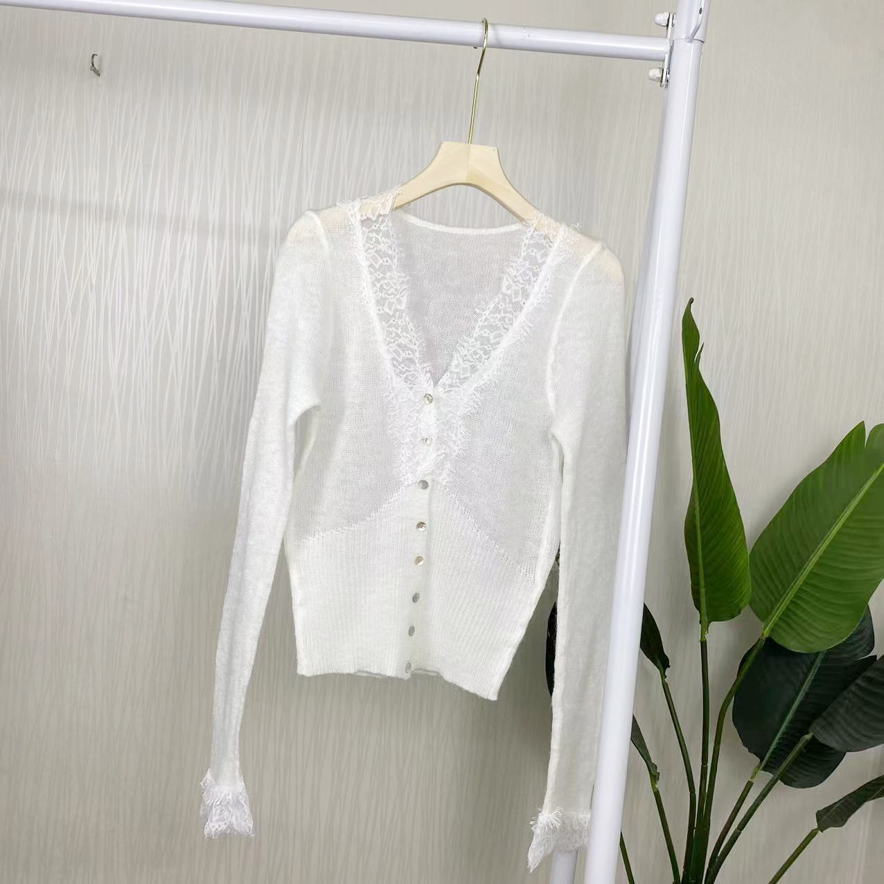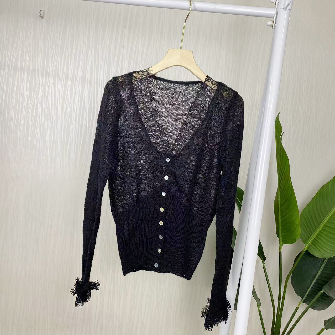 섹시하고 독특한 니트 이너웨어 여성용 봄 초봄 니치 탑 레이스 셔츠 우아한 프렌치 스타일스토어 가기
