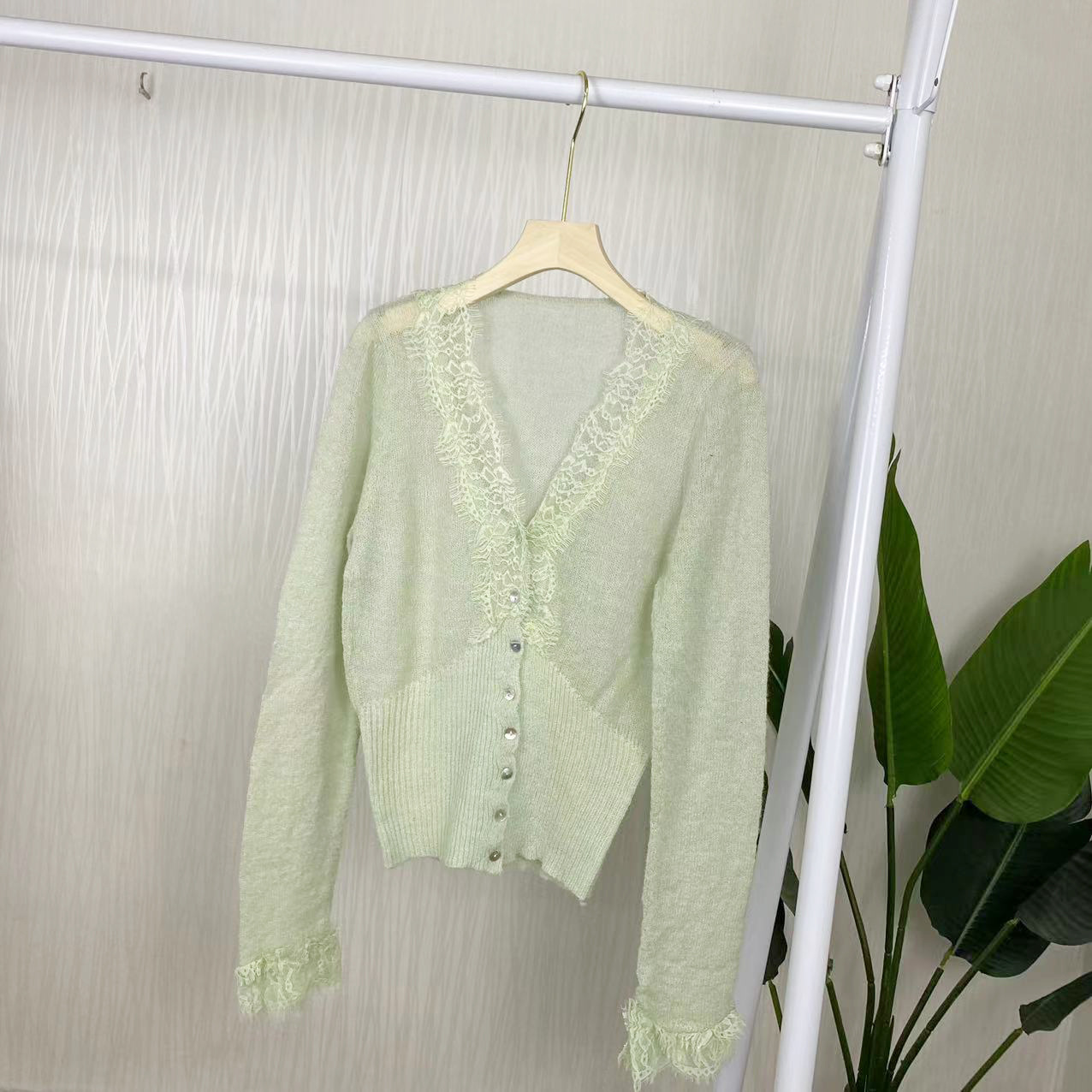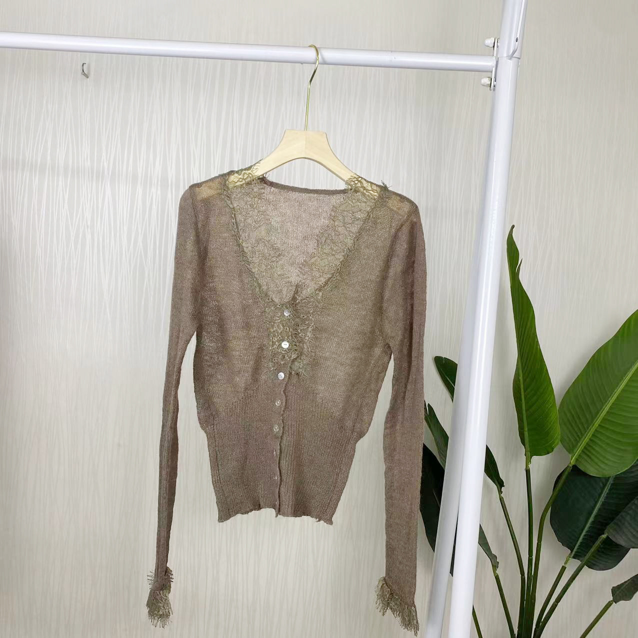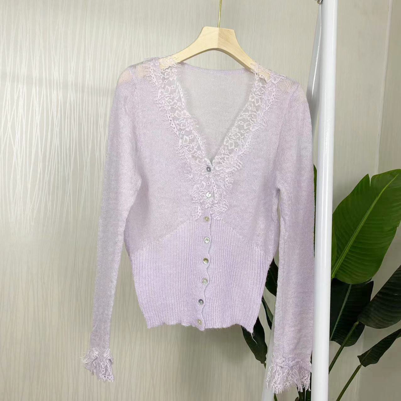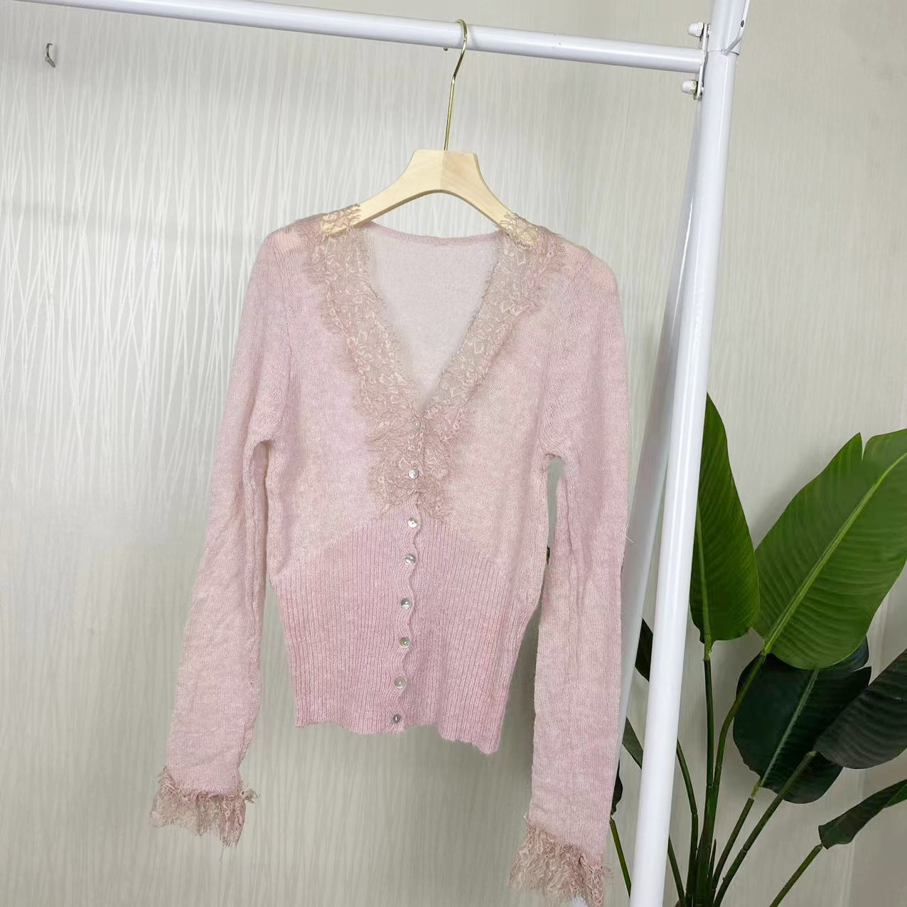 섹시하고 독특한 니트 이너웨어 여성용 봄 초봄 니치 탑 레이스 셔츠 우아한 프렌치 스타일스토어 가기