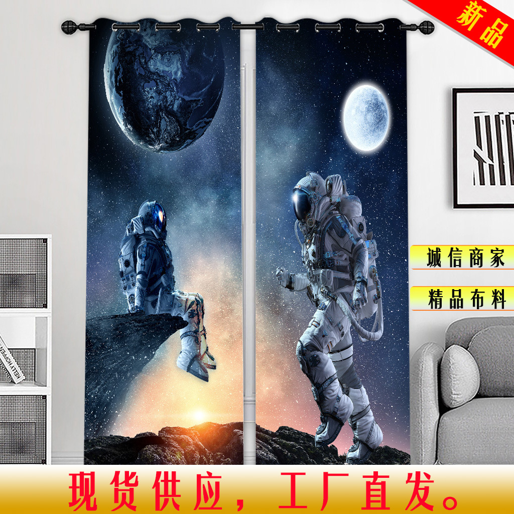 产品名称:亚马逊速卖通爆款数码印花窗帘宇航员厂家直销来图打印一件代发,数码印花窗帘成品=窗帘+配件挂钩+赠品罗马圈(不含窗帘杆或者轨道)
