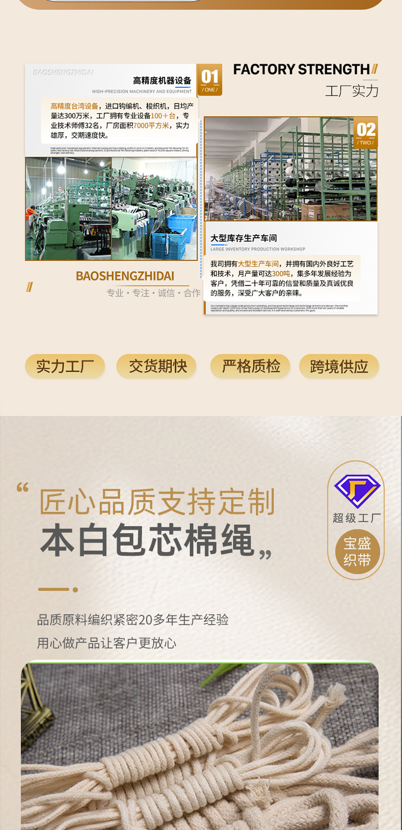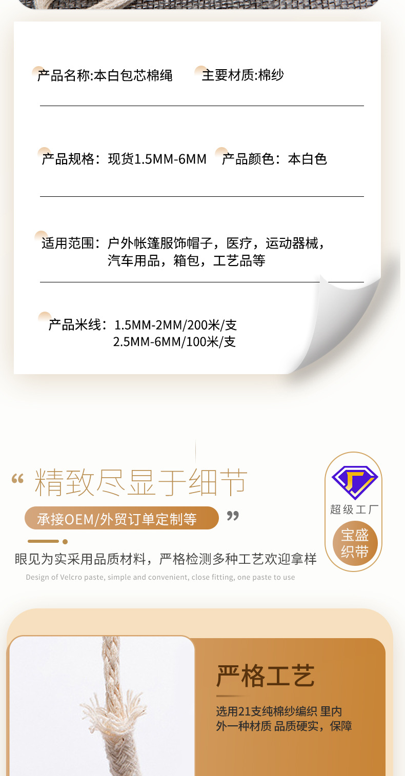 솔리드 코어 화이트 코어 코튼 로프 제조 업체 코튼 백 거들 표백 허리 밴드 캡 태그 로프 파이프 코어 코튼 로프스토어 가기