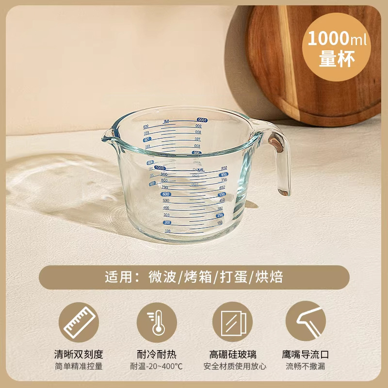 손잡이 유리 스케일 컵 가정용 고온 저항하는 주방 우유 계란 그릇 베이킹 도구 대용량 컵 측정 컵스토어 가기