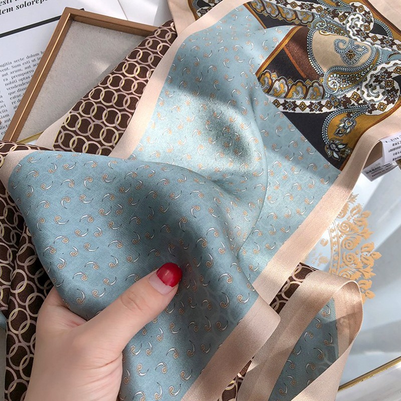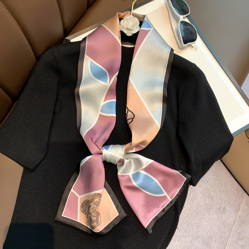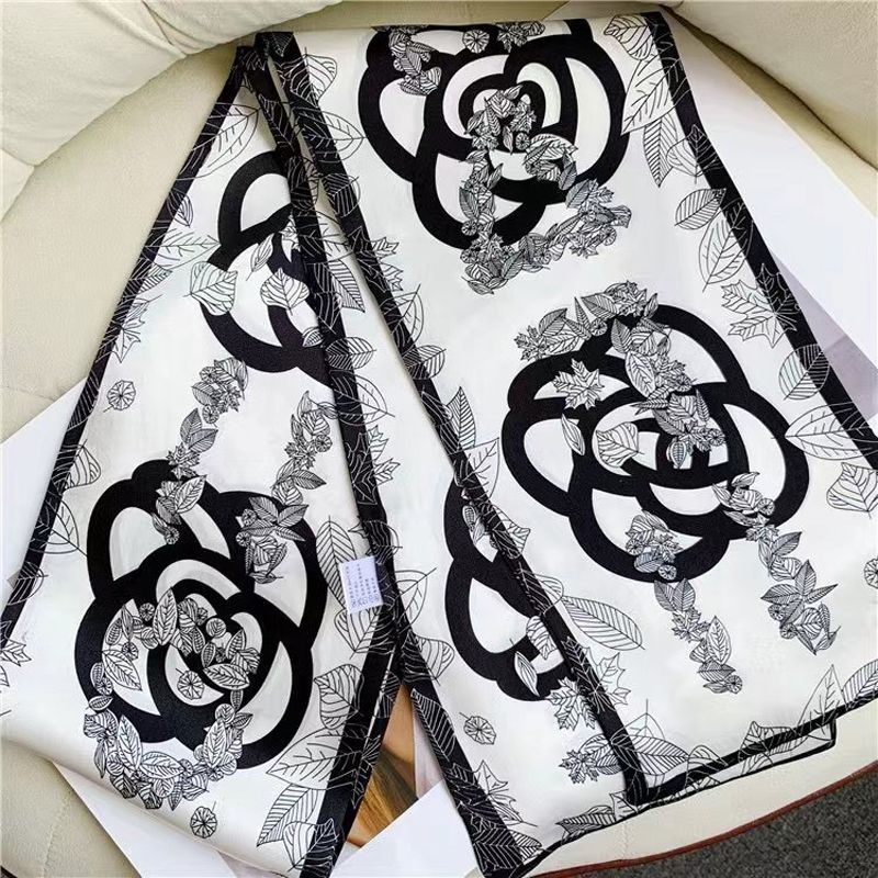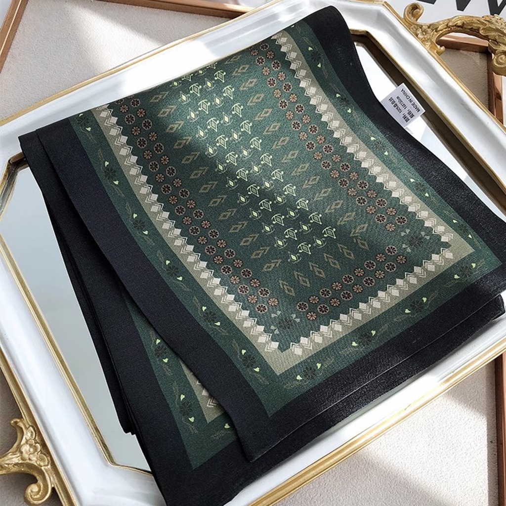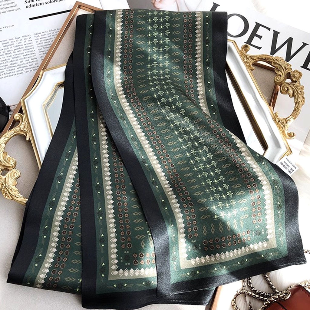 우아한 그린 올 매치 멀 베리 실크 스카프 봄과 여름 긴 더블 레이어 양면 실크 스카프 얇은 좁은 긴 스카프 리본스토어 가기