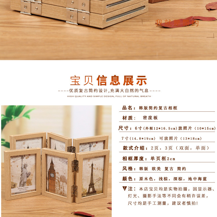 공장 도매 창조적 인 3 배 나무 사진 프레임 사진 프레임 테이블 6 인치 7 인치 양면 접이식 사진 프레임 아트 프레임스토어 가기