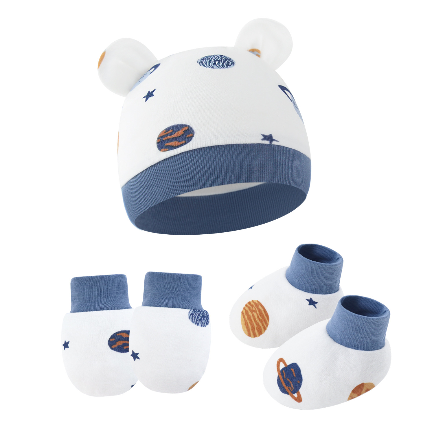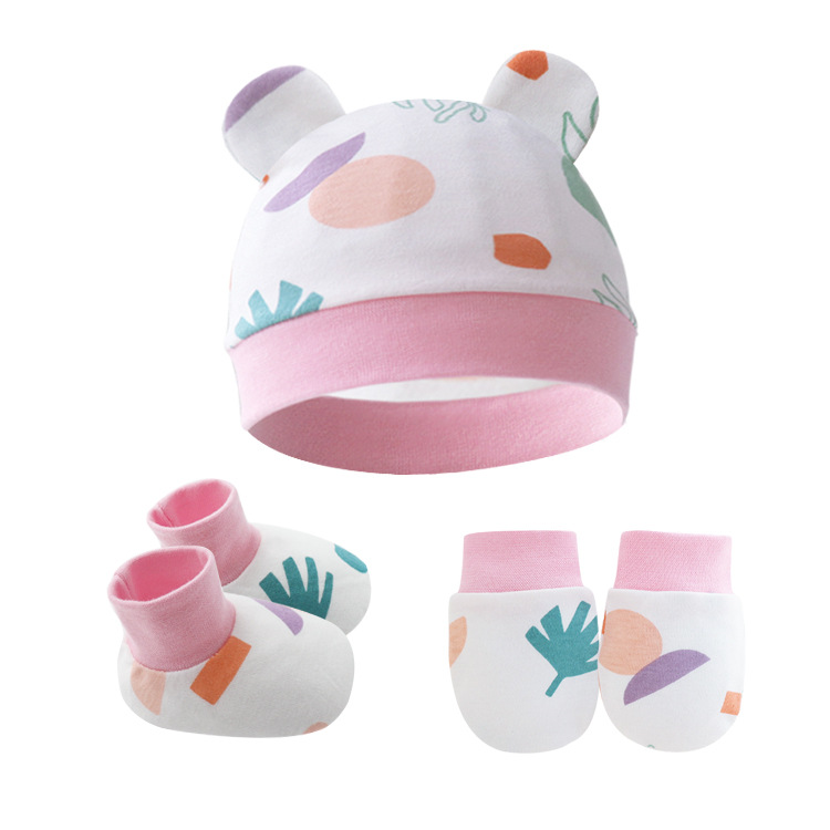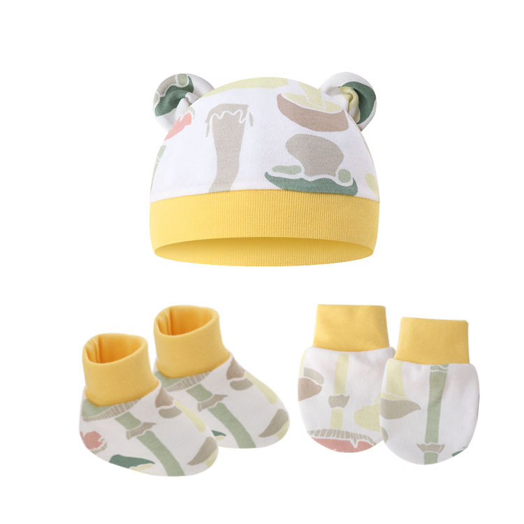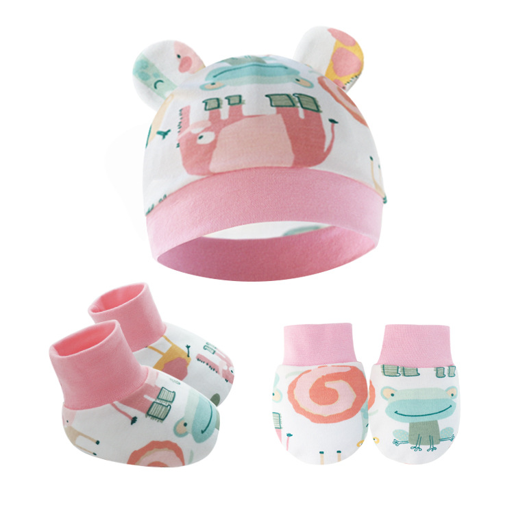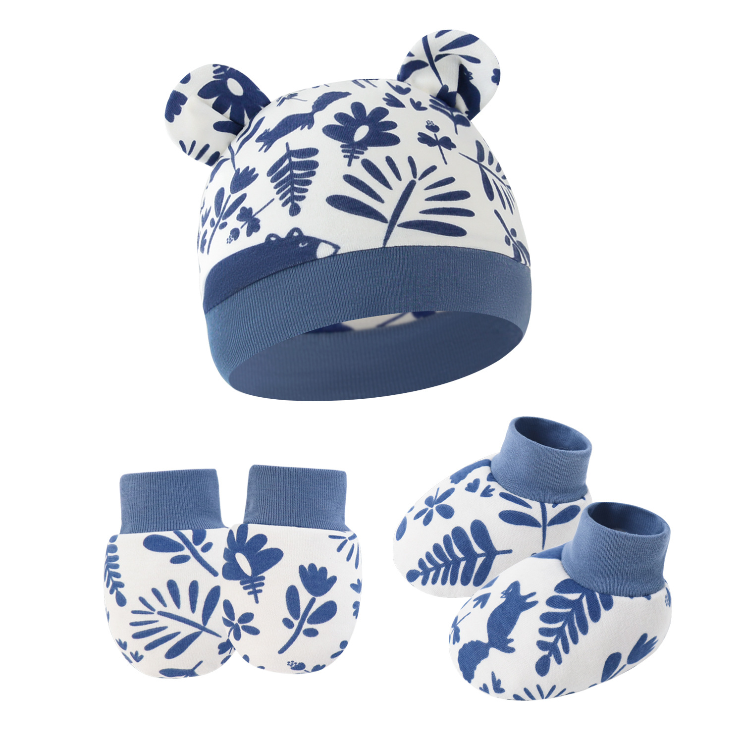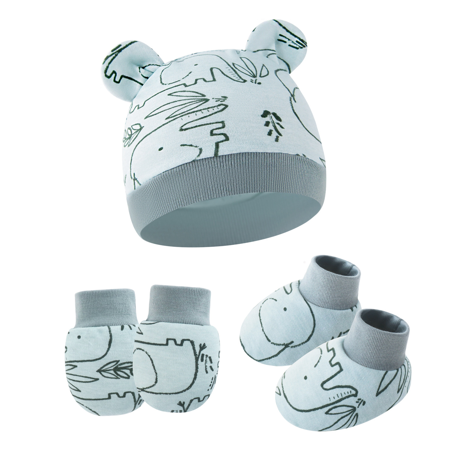 수출용 아기 모자, 아기 손발 보호장갑, 귀여운 곰돌이 모자, 신생아 귀달이 모자 (0-6개월)