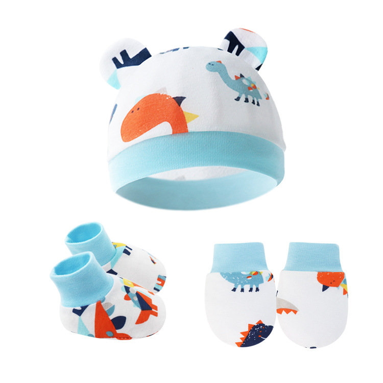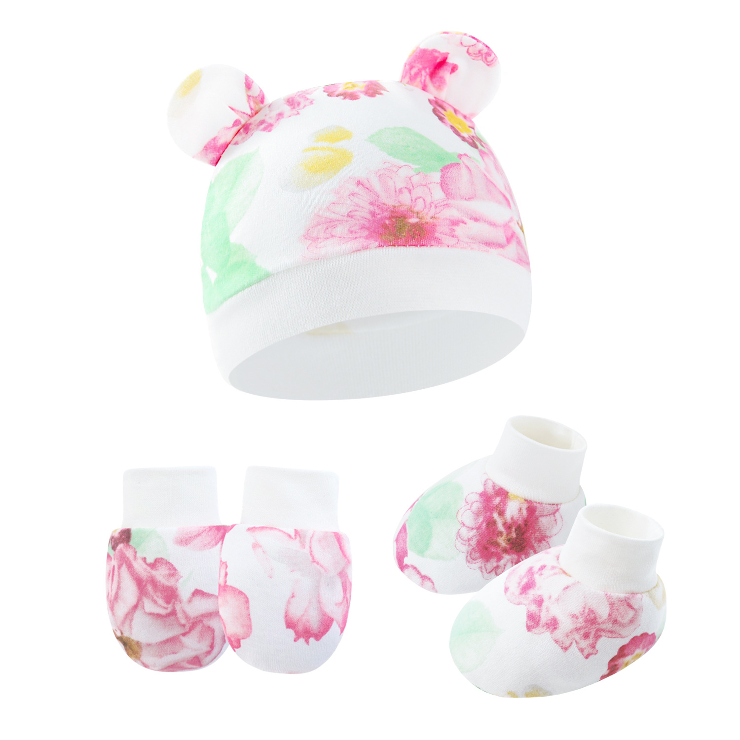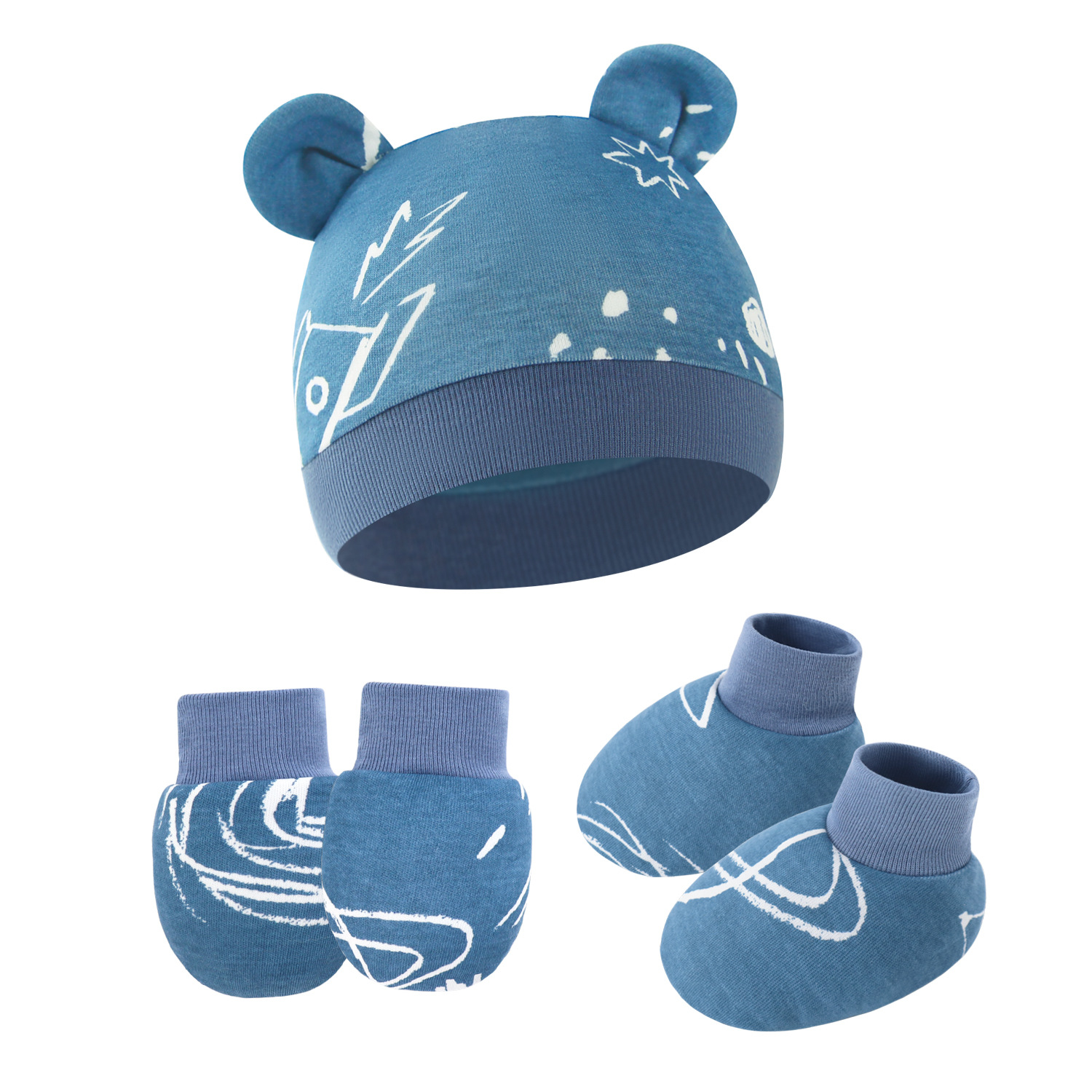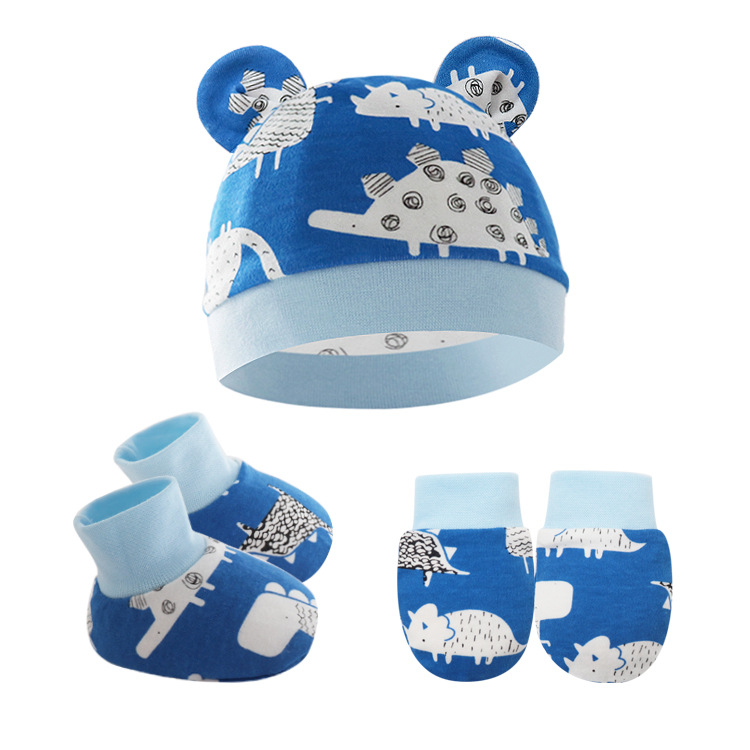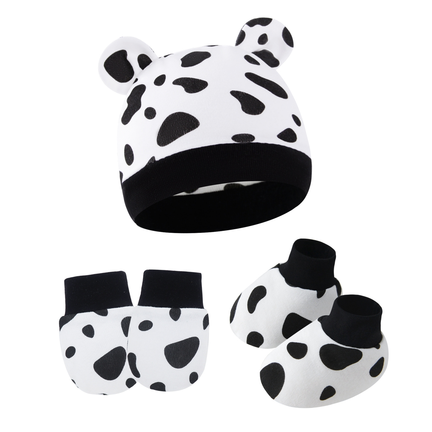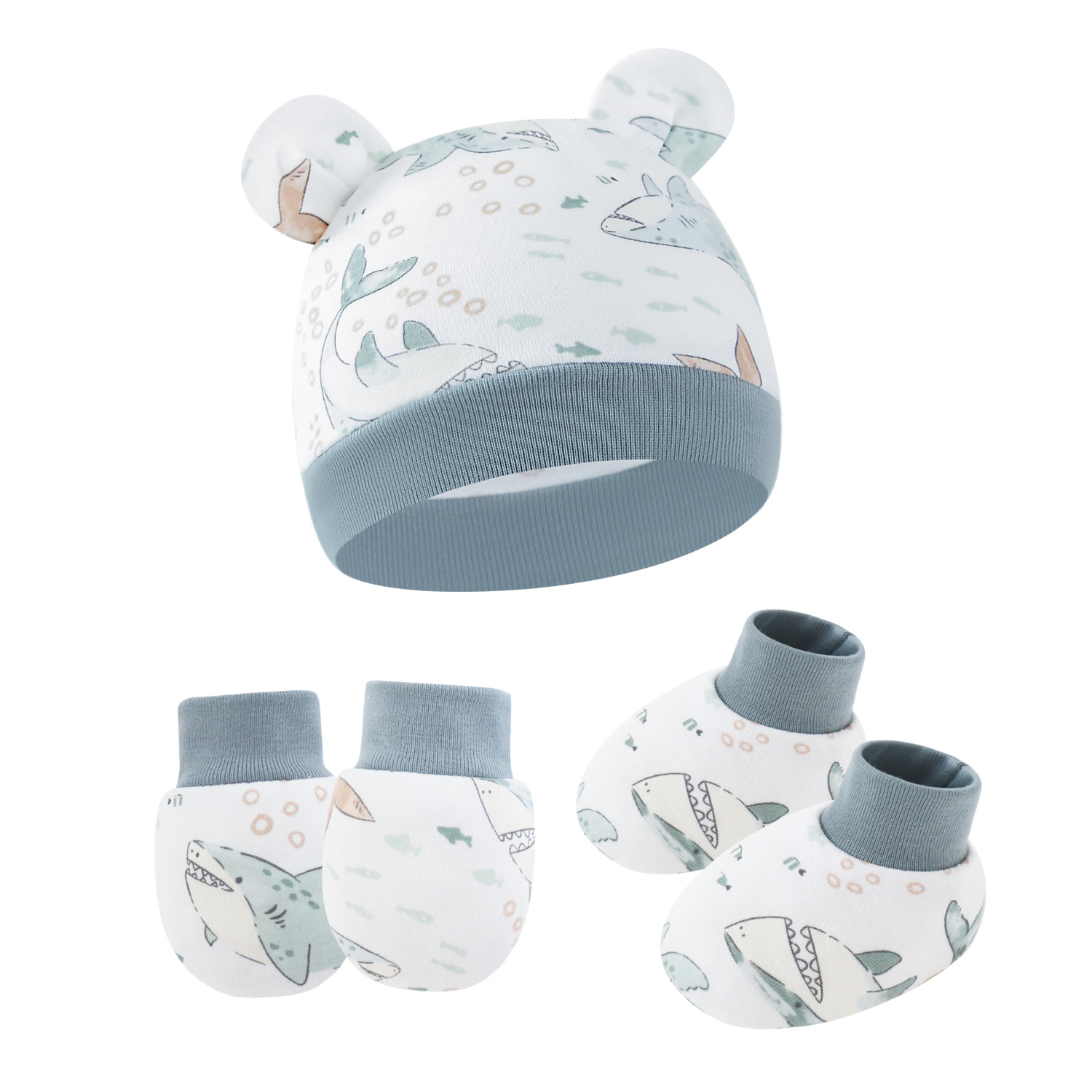 수출용 아기 모자, 아기 손발 보호장갑, 귀여운 곰돌이 모자, 신생아 귀달이 모자 (0-6개월)