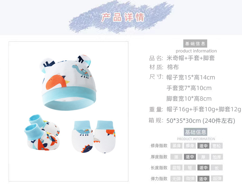 수출용 아기 모자, 아기 손발 보호장갑, 귀여운 곰돌이 모자, 신생아 귀달이 모자 (0-6개월)스토어 가기