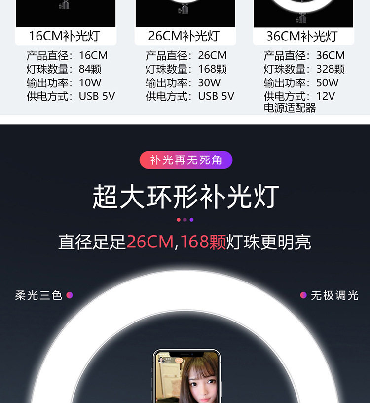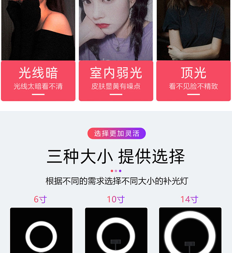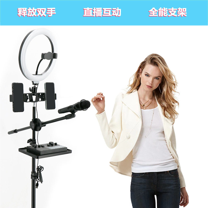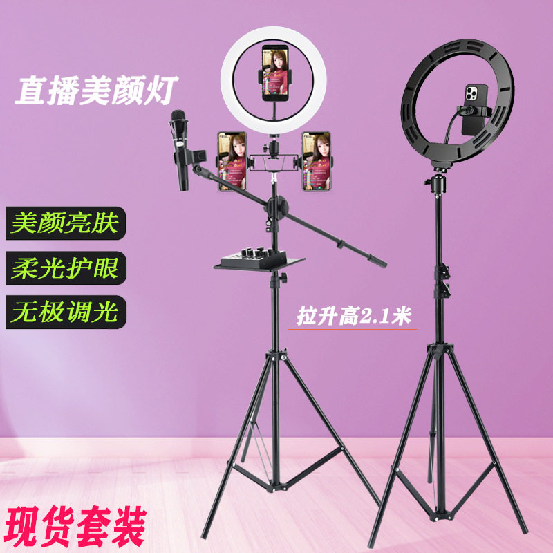 휴대 전화 라이브 조명 보충 브래킷 아름다움 LED 링 앵커 셀카 장비 촬영 바닥 삼각대의 전체 세트스토어 가기
