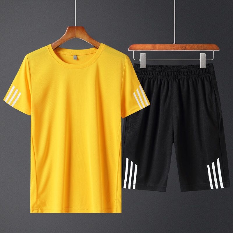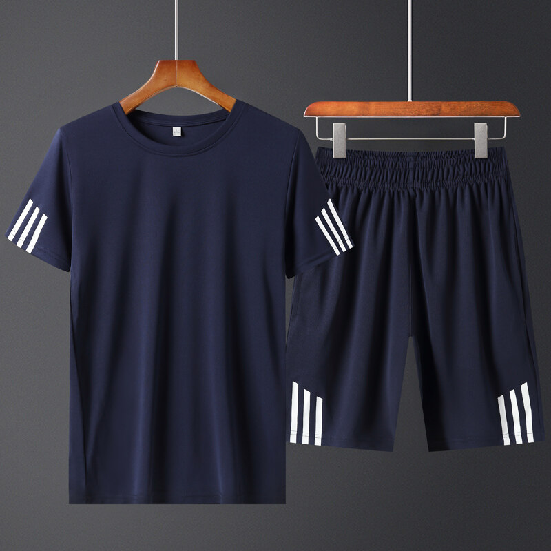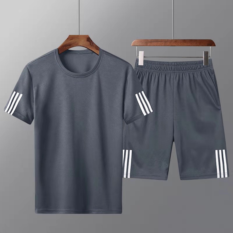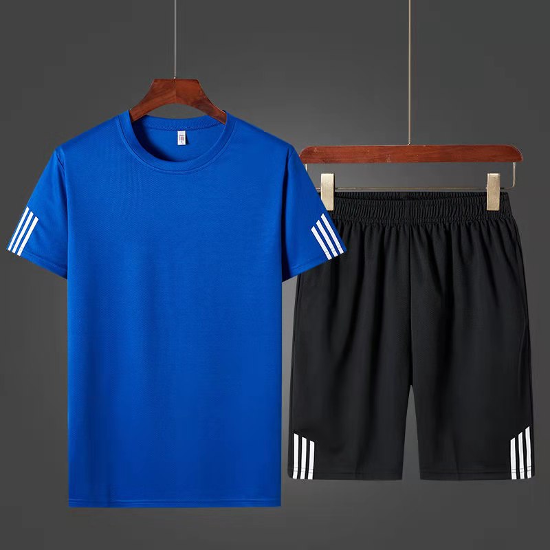 여름 남성용 속건 반팔 반바지 스포츠 세트 남성용 트렌디한 쓰리바 세트 플러스 사이즈 캐주얼 투피스 세트