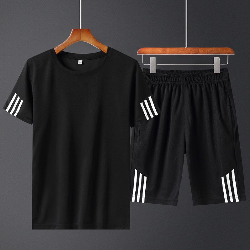 여름 남성용 속건 반팔 반바지 스포츠 세트, 수출용 삼선 세트, 큰 사이즈 캐주얼 투피스 세트, 해외 직구스토어 가기