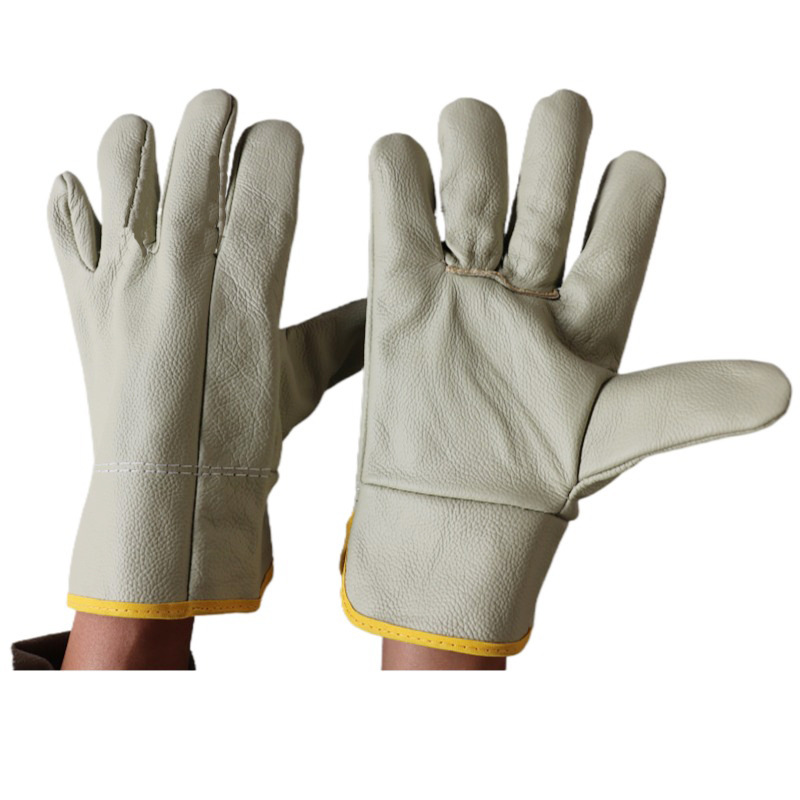 긴 소가죽 용접기 장갑 내츄럴 컬러 2 층 안티 벨벳 두꺼운 통기성 땀 흡수 용접 처리 노동 보호 장갑