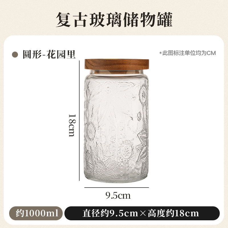 인터넷 인기 상품 엠보싱 유리 밀폐 용기 레트로 유리병 주방 잡곡 식품 차 보관 용기스토어 가기