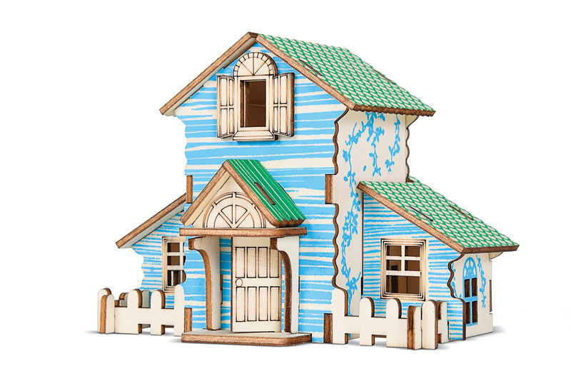 레이저 절단 나무 퍼즐 3D 입체 퍼즐 DIY 모델 작은 집 건물 집 시리즈 작은 2 조각