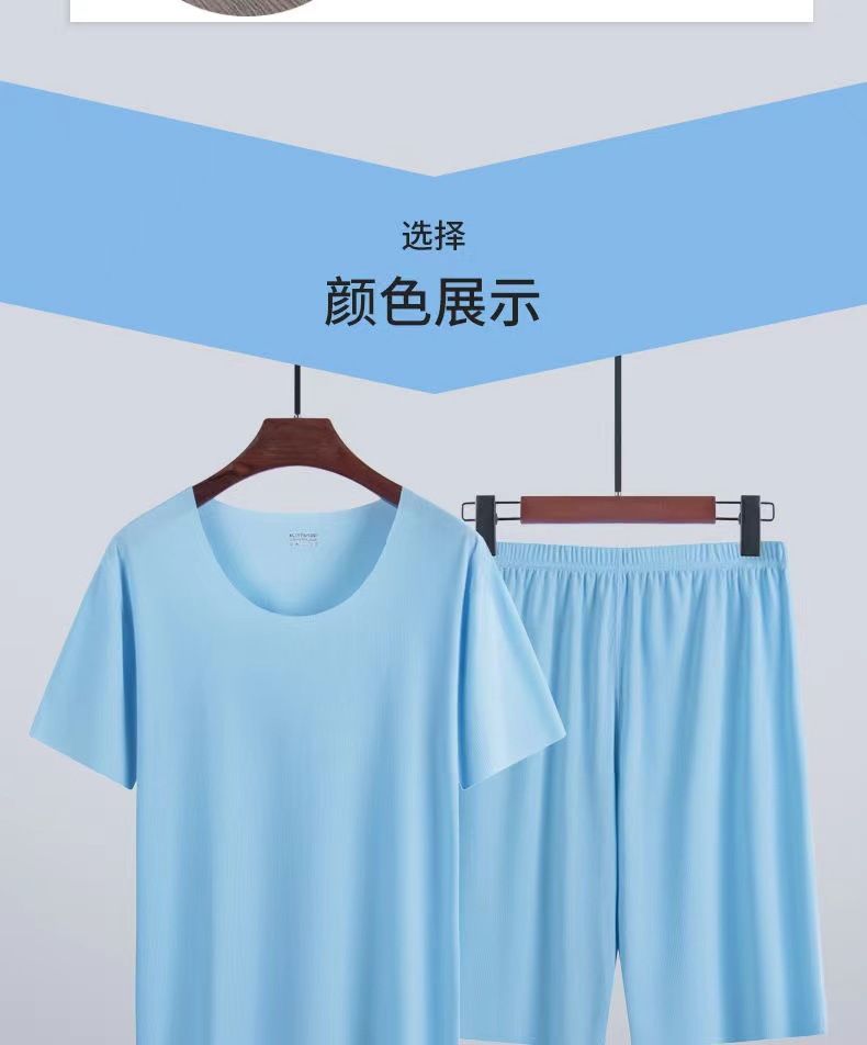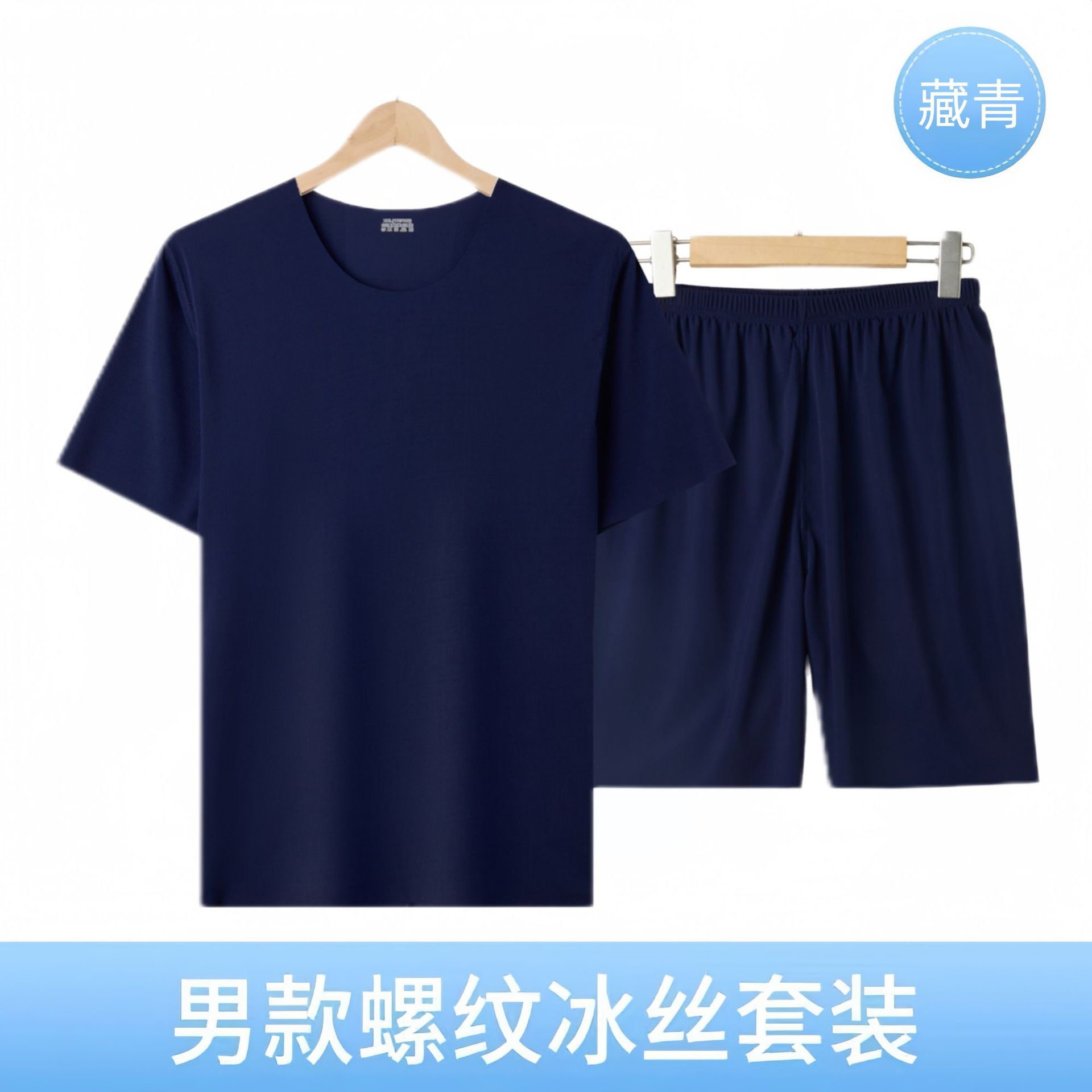 아이스 실크 잠옷 남자의 여름 가정 옷 세트 모달 원활한 크루넥 얇은 짧은 소매 남자의 티셔츠 도매