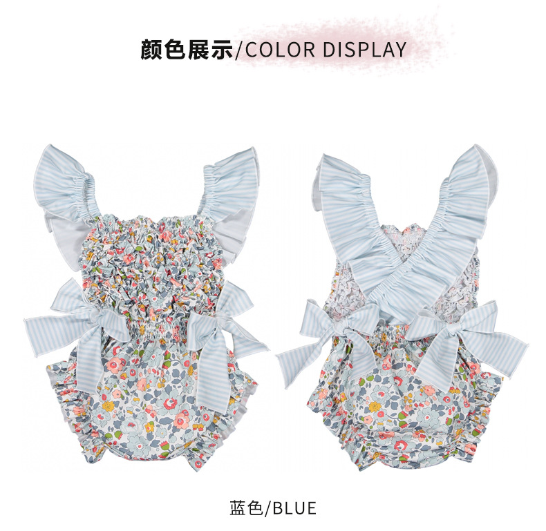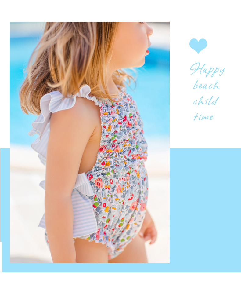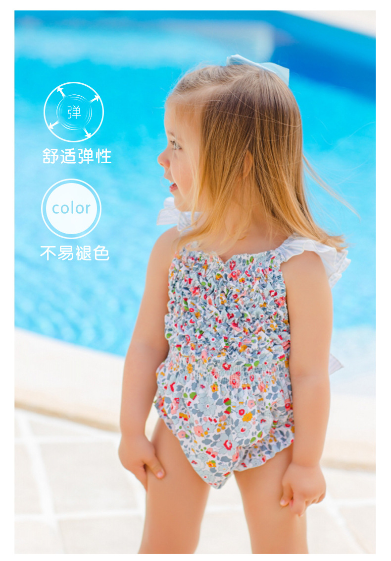 Sal*25 Xia Xin 여자 수영복 아기 원피스 서스펜더 수영복 블루 핑크 프린트 귀여운 해변 수영복