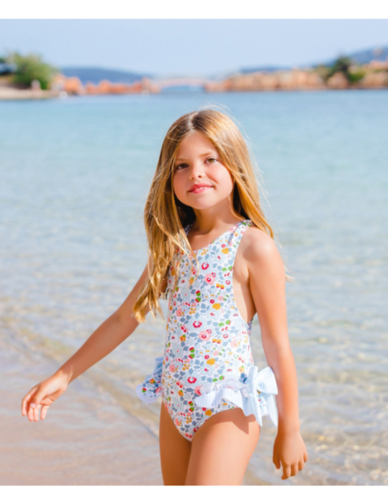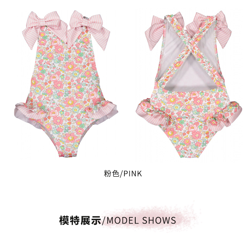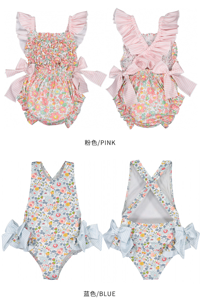 Sal*25 Xia Xin 여자 수영복 아기 원피스 서스펜더 수영복 블루 핑크 프린트 귀여운 해변 수영복스토어 가기