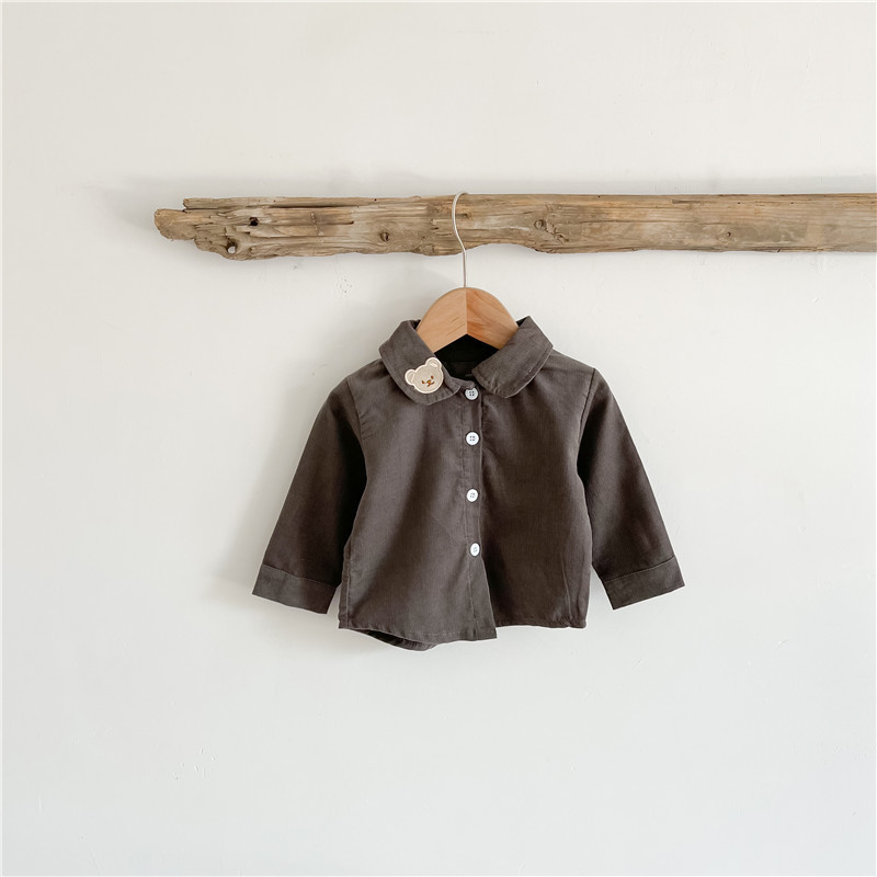 봄과 가을 옷 소년과 소녀 셔츠 곰 수 놓은 한국어 심플 북 코듀로이 긴팔 잘 생긴 탑스토어 가기