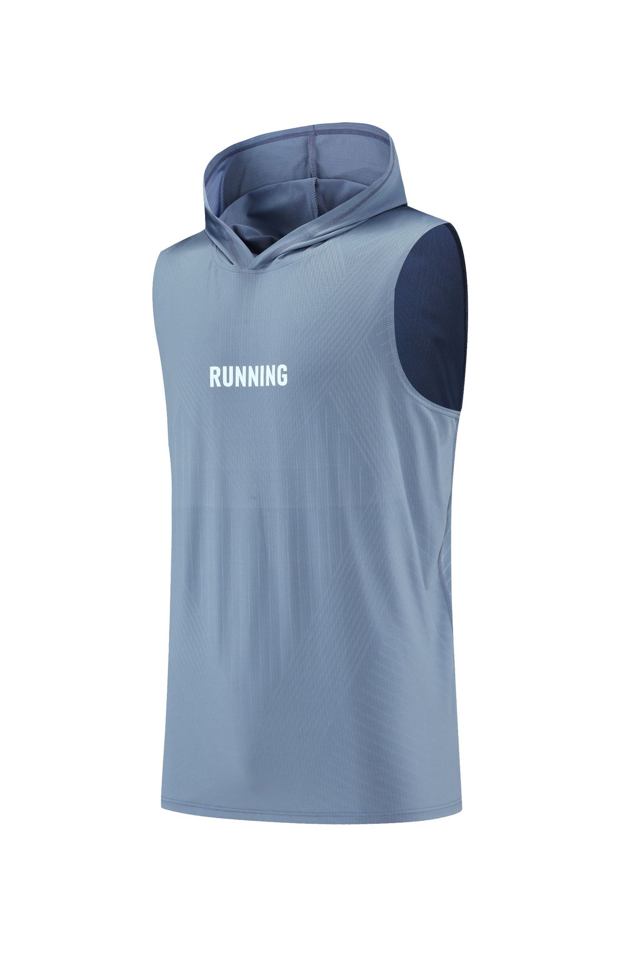 여름 새로운 후드 속건 스포츠 조끼 남성용 아마존 크로스 보더 피트니스 남성용 민소매 티셔츠 러닝 트레이닝 복