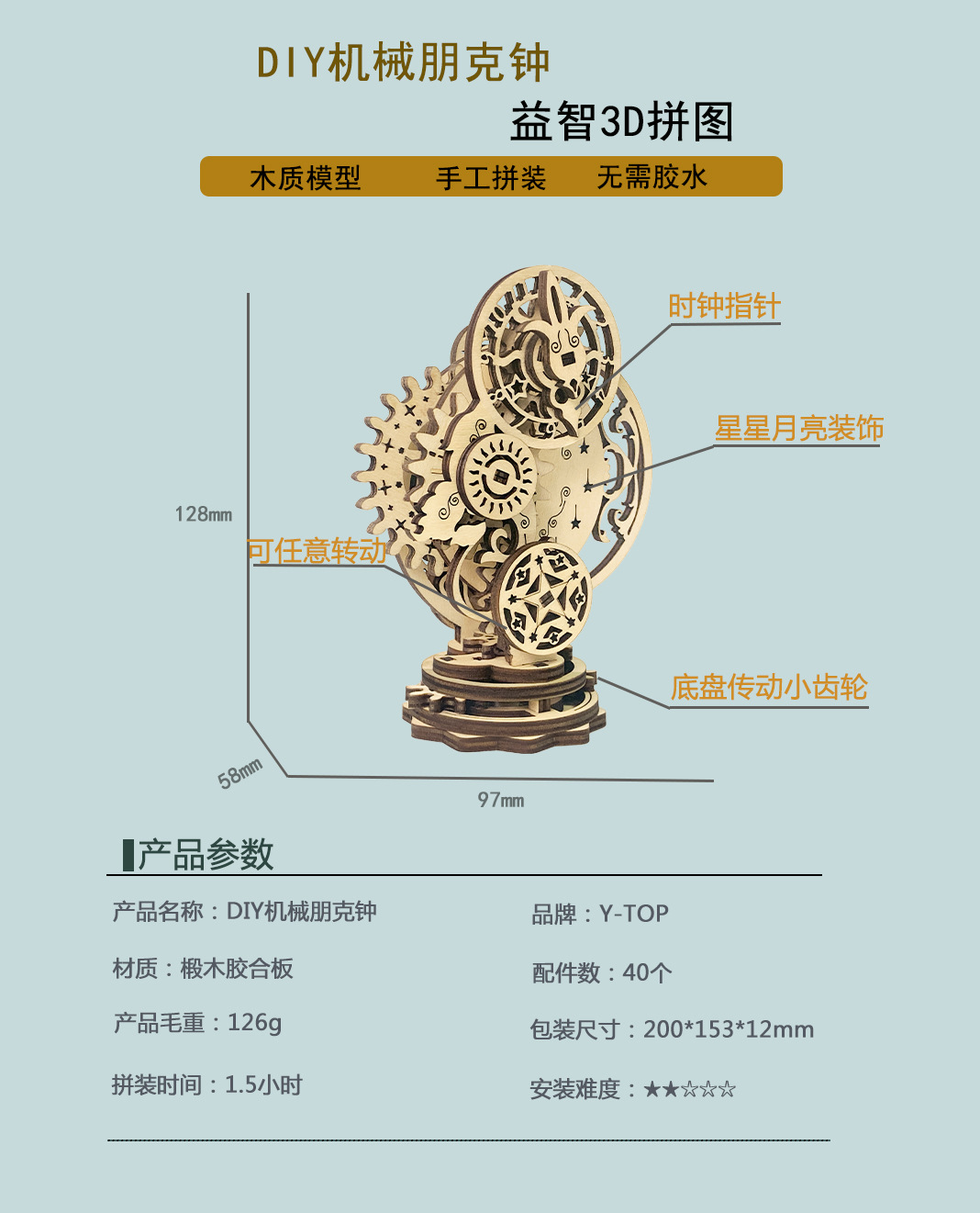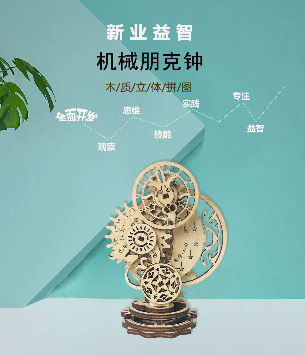 목재 기계식 펑크 시계 3D 퍼즐 어린이 교육용 장난감 수제 조립 선물 크로스보더 창의적 퍼즐스토어 가기