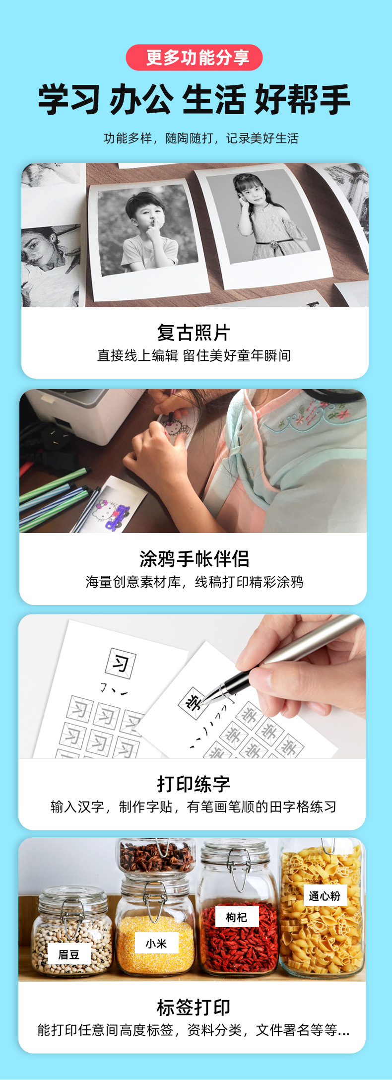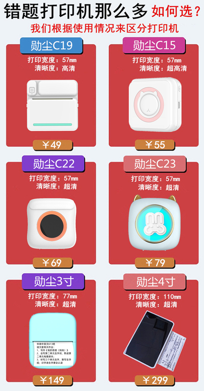 Xun Chen 3 "와이드 HD 잘못된 질문 프린터 작은 레이블 학생 숙제 사진 복사 손 계정 열 인쇄스토어 가기