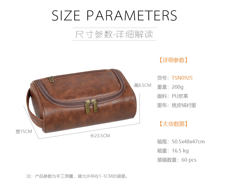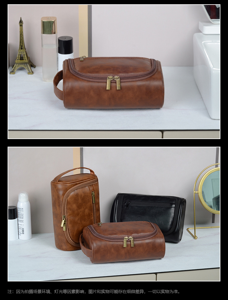 크로스 보더 새로운 휴대용 Pu 가죽 화장품 가방 복고풍 유럽과 미국 브랜드 화장품 가방 고급 방수 여행 세척 가방