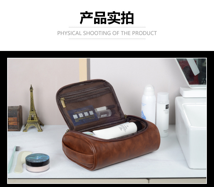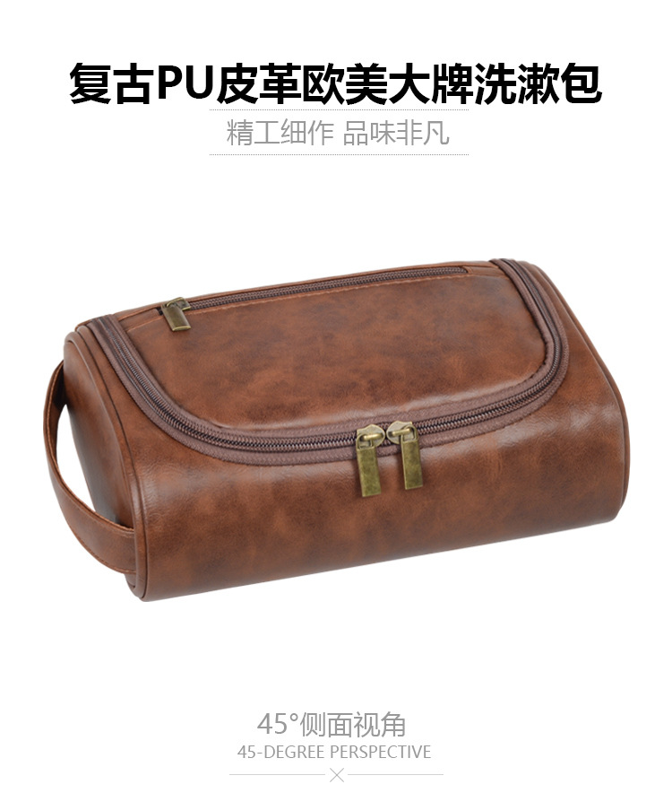 크로스 보더 새로운 휴대용 Pu 가죽 화장품 가방 복고풍 유럽과 미국 브랜드 화장품 가방 고급 방수 여행 세척 가방스토어 가기
