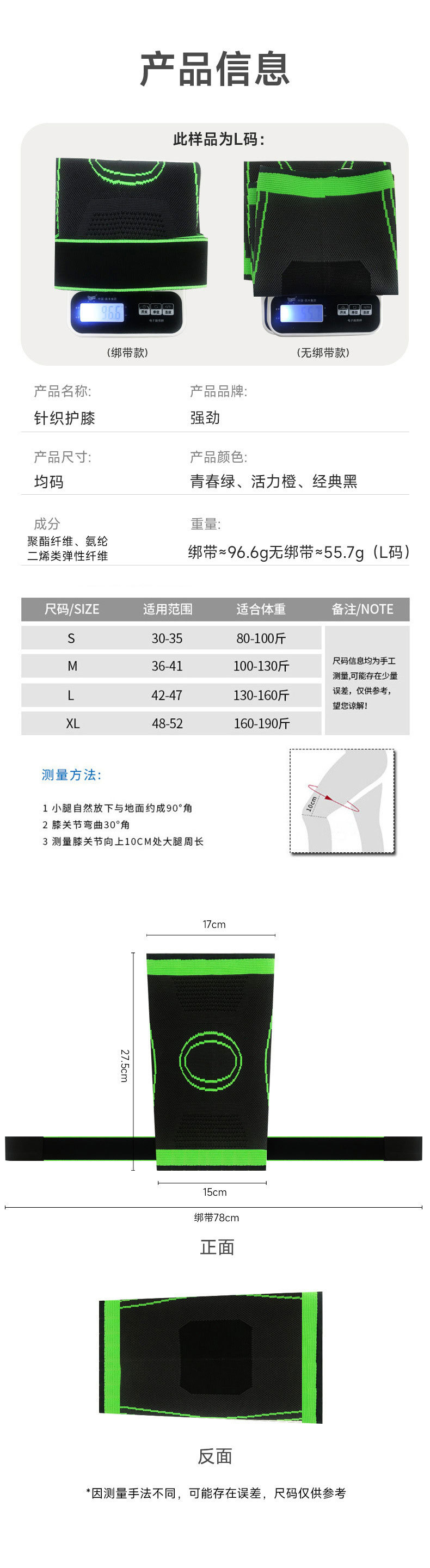 【品名】 1007针织绑带护膝