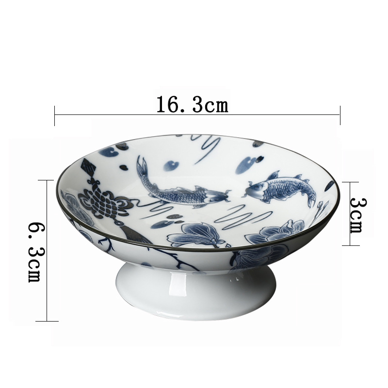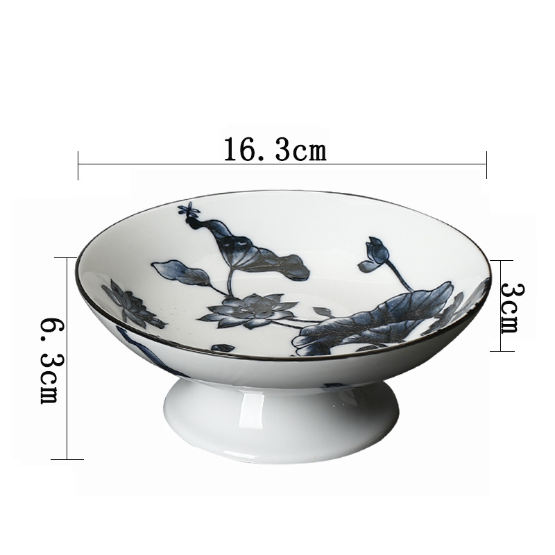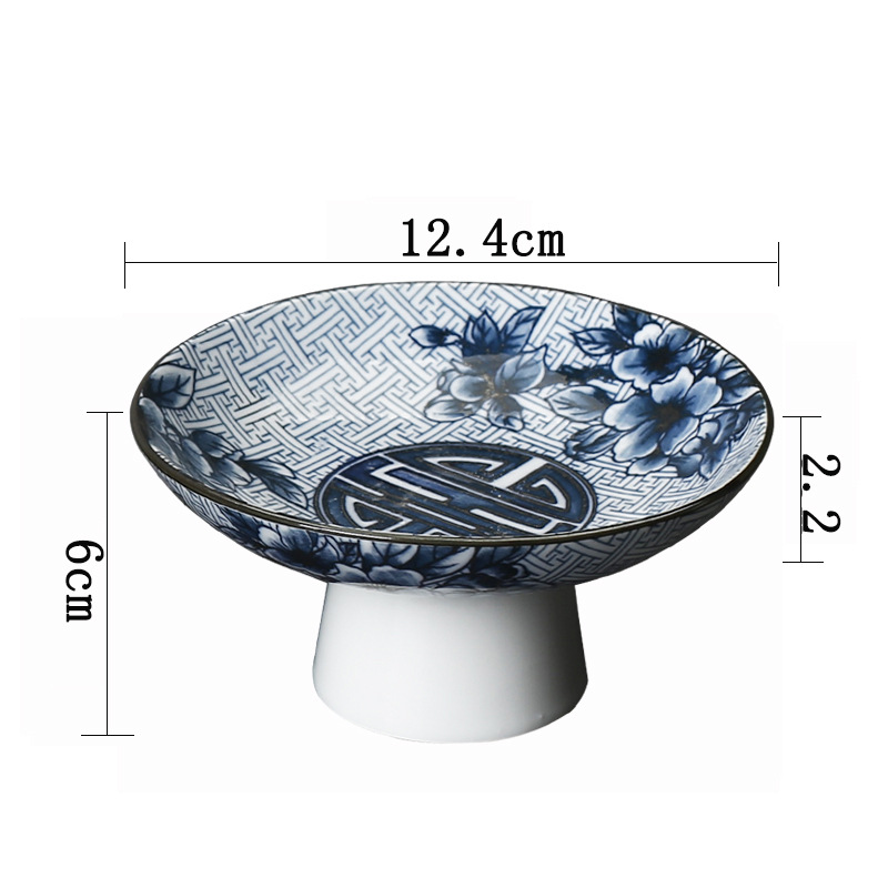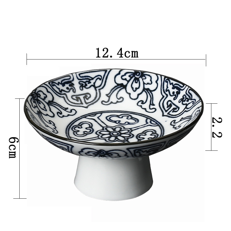 • 스몰 사이즈 높은 발 과일 접시 파란색과 흰색 (코드-16)