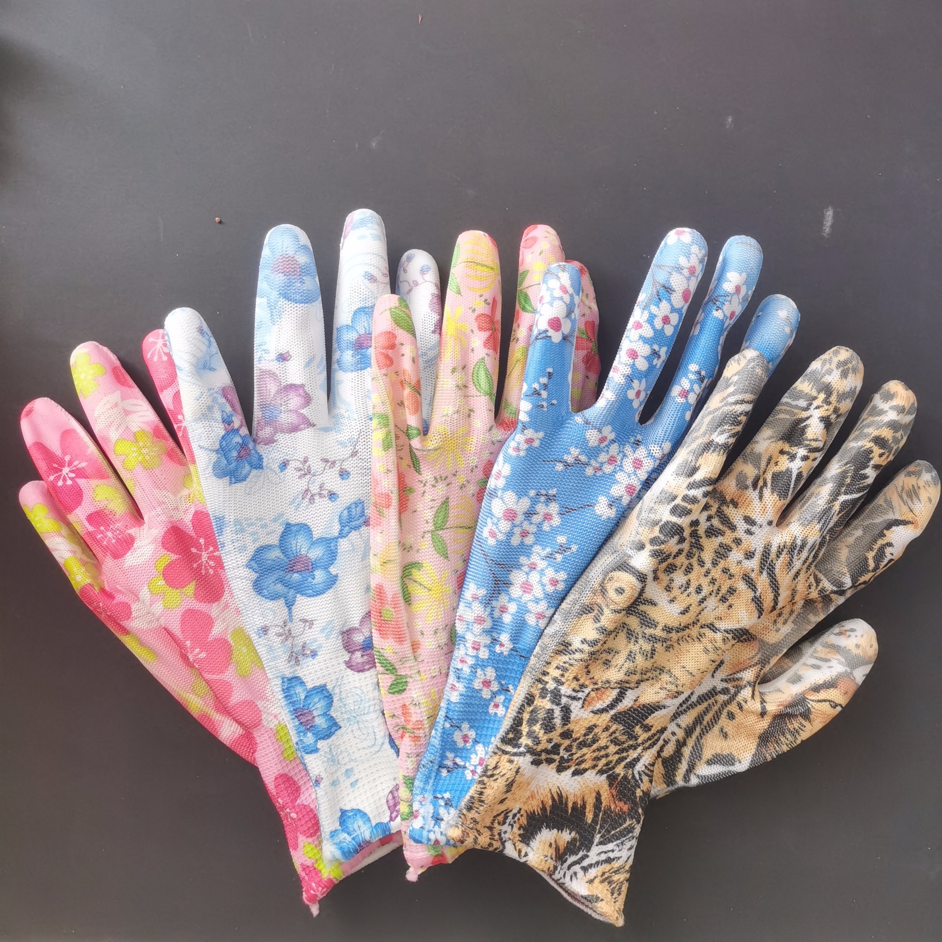 13바늘 나일론 컬러 PU 코팅 손바닥 점 플라스틱 장갑 여성 노동 보호 원예 전자 공장 인쇄 고무 얇은 장갑스토어 가기