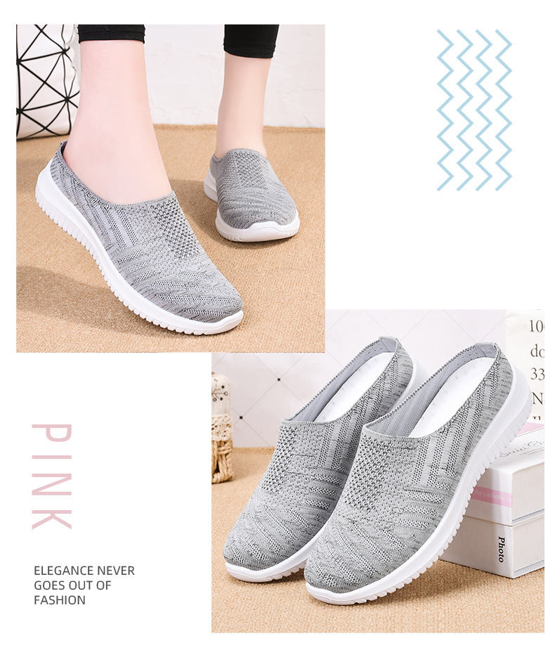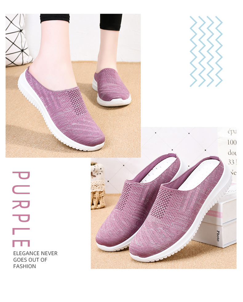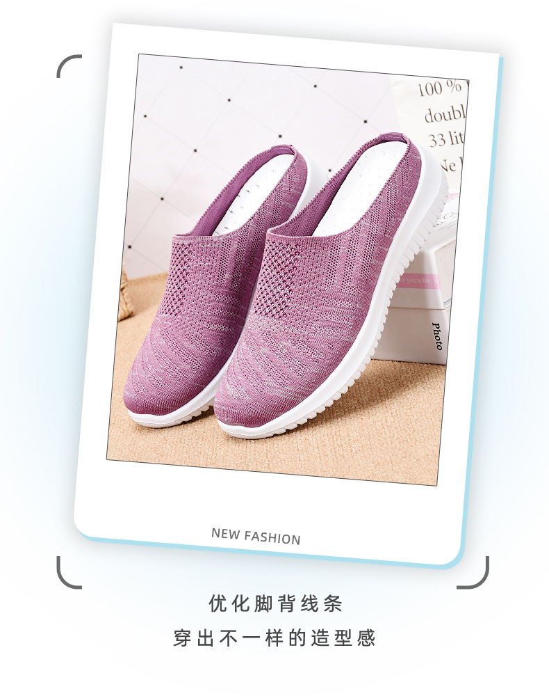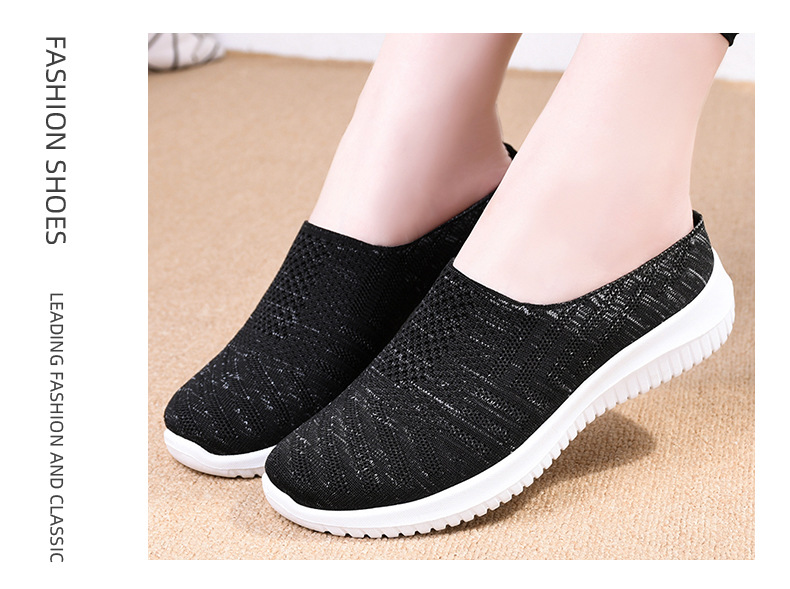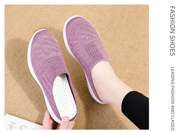 신발 여성 신상 슬리퍼 슬립온 발가락 반슬리퍼 통기성 플라이 니트 신발 부드러운 밑창 캐주얼 신발 피곤하지 않은 어머니 신발스토어 가기