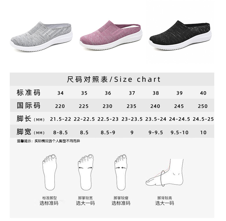 신발 여성 신상 슬리퍼 슬립온 발가락 반슬리퍼 통기성 플라이 니트 신발 부드러운 밑창 캐주얼 신발 피곤하지 않은 어머니 신발
