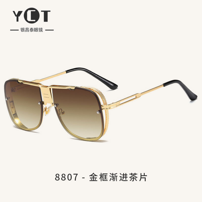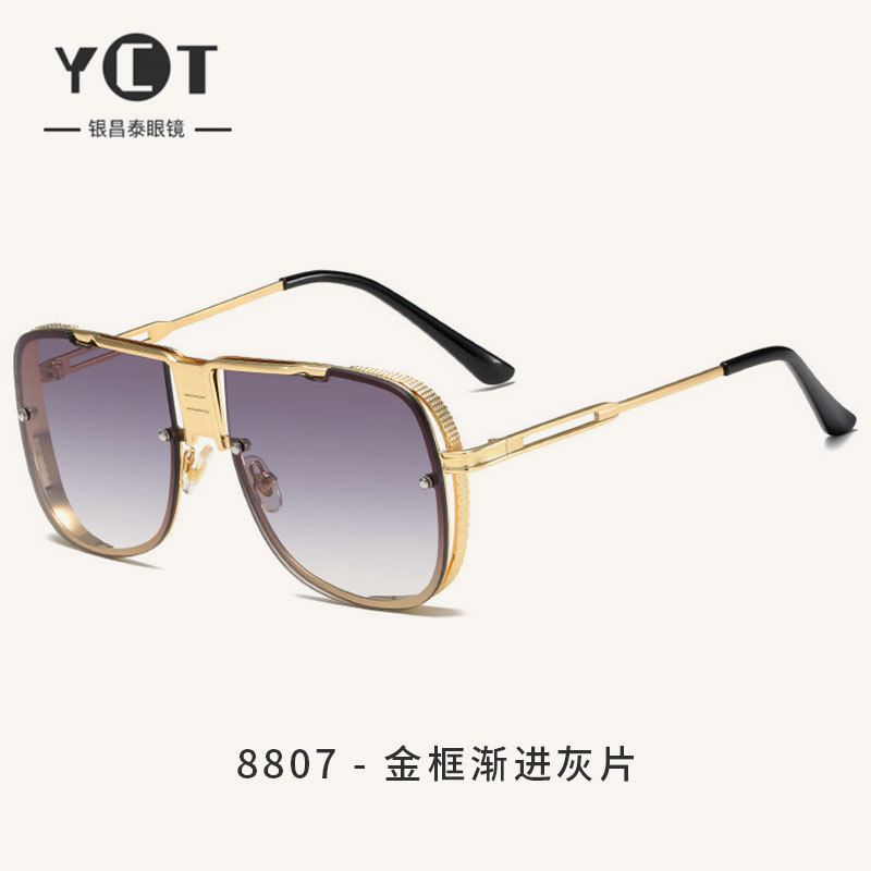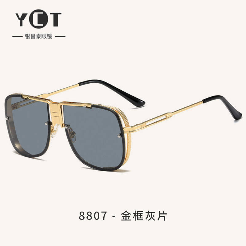 #8807 선글라스 남성용 빅 프레임 안경 인터넷 연예인 스타 같은 스타일 복고풍 유럽과 미국 패션 금속 선글라스 여성 스타일스토어 가기