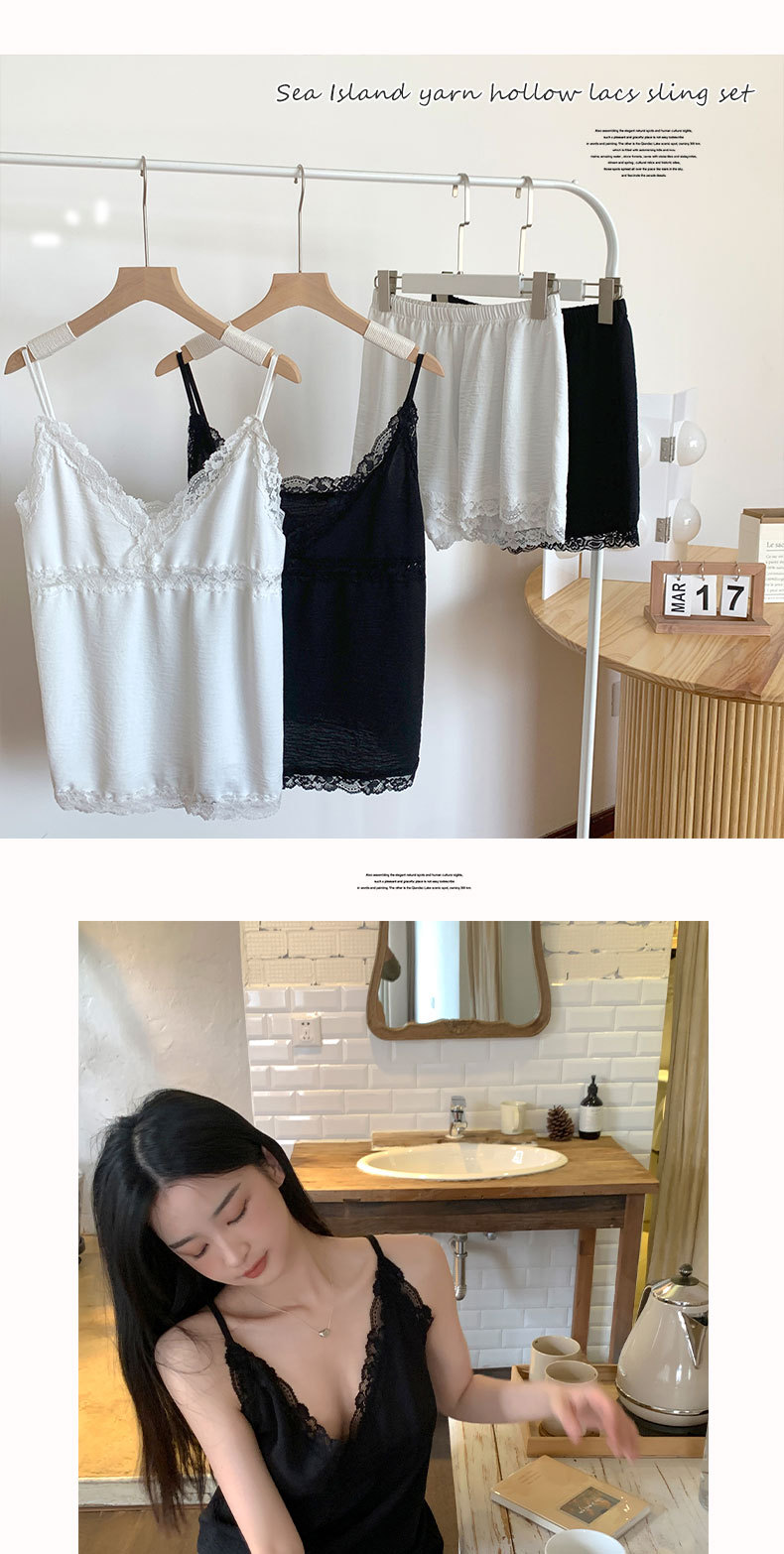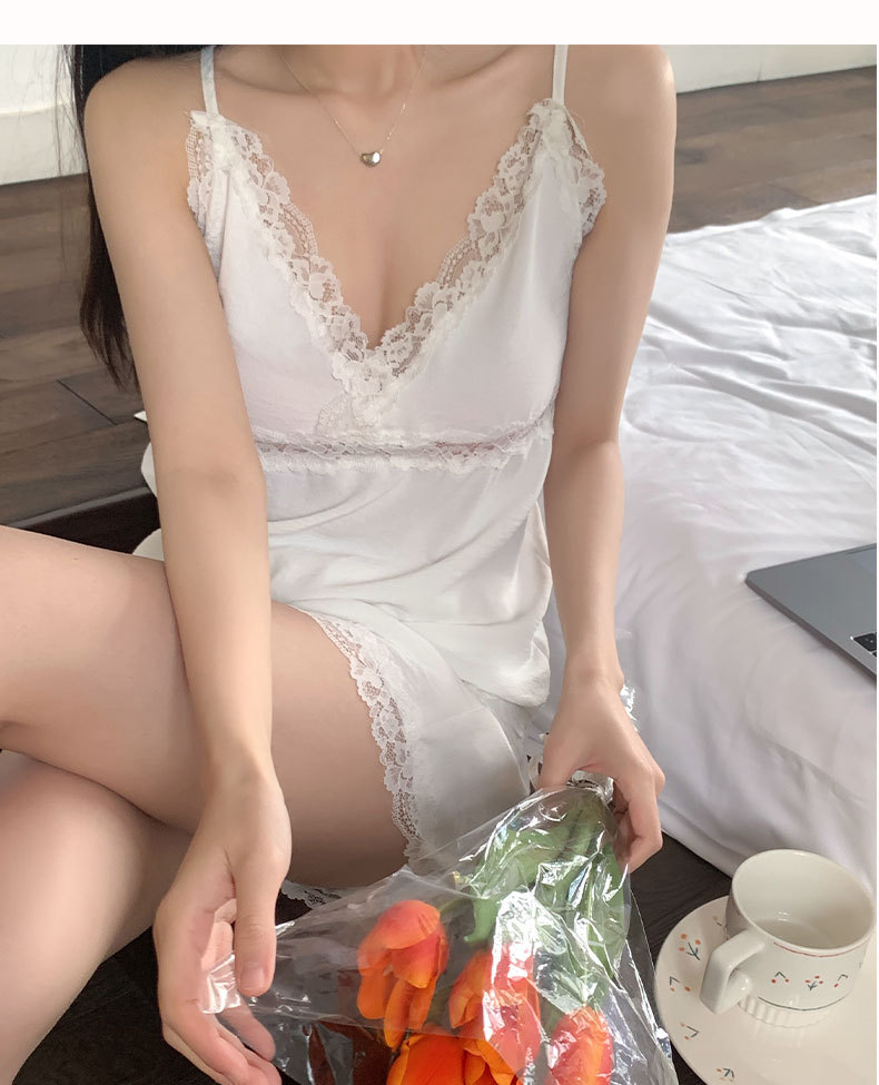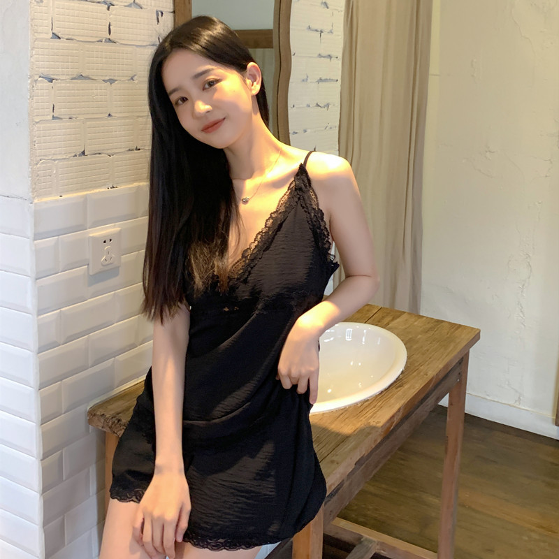 UNCILE 웨니 프렌치 잠옷 여성용 여름 새틴 섹시 레이스 슬립 탑 투피스 가정복스토어 가기