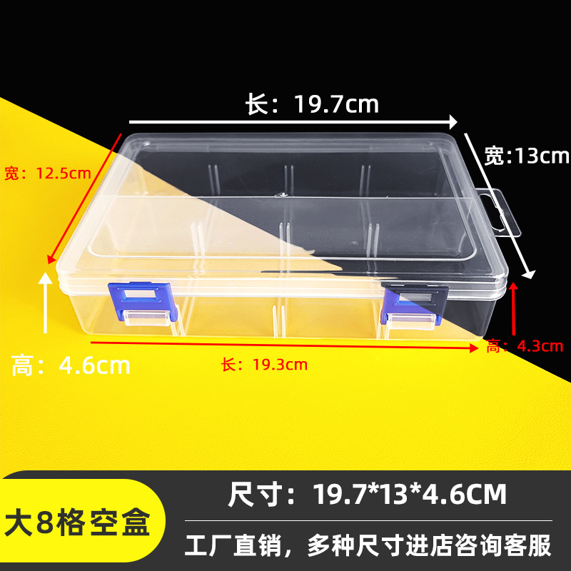 대형 8 칸 수평 2 칸 빈 상자 더블 버클 투명 플라스틱 보관 상자 pp 상자 보석 카드 하드웨어 도구 분류 상자