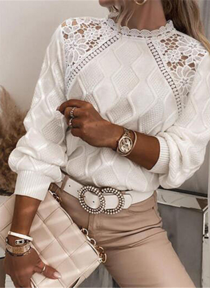 폭발 가을과 겨울 숙녀 레이스 숄더 스웨터 여성용 탑 우아한 슬림 핏 니트 풀오버 탑
