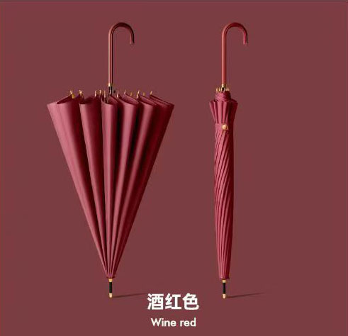左都同款皮木弯柄16骨长柄雨伞全纤维自动商务大伞双人弯钩木柄伞