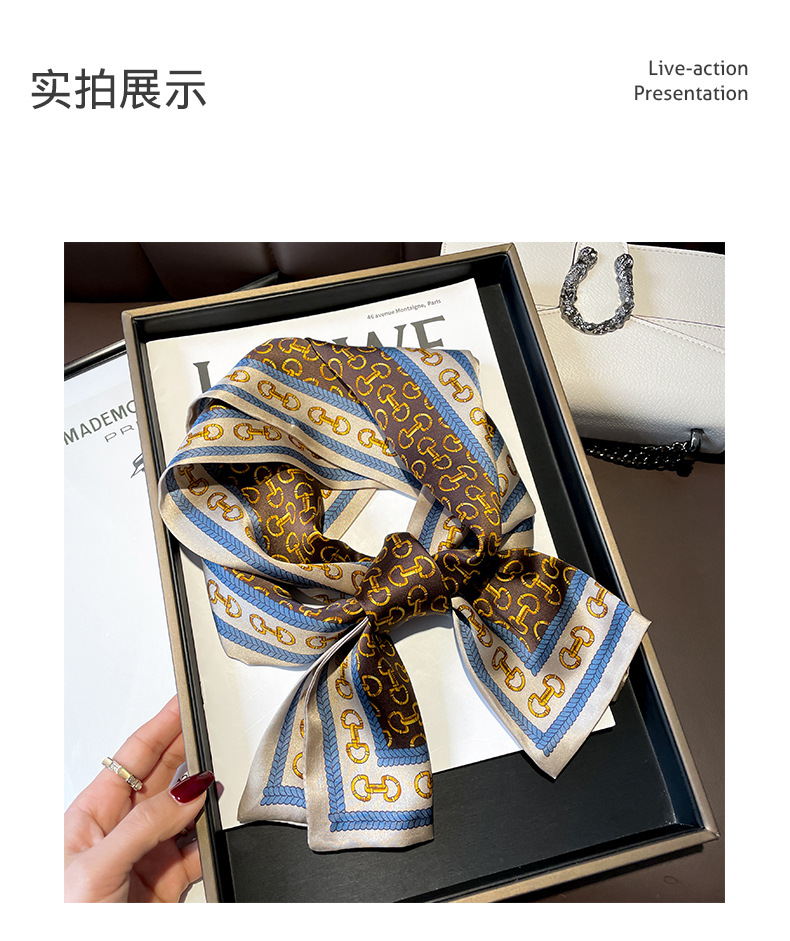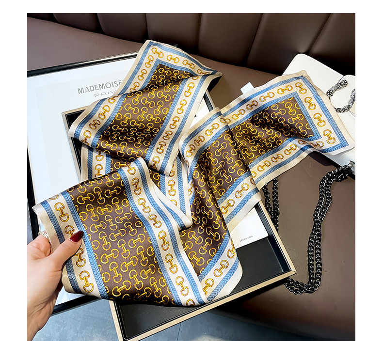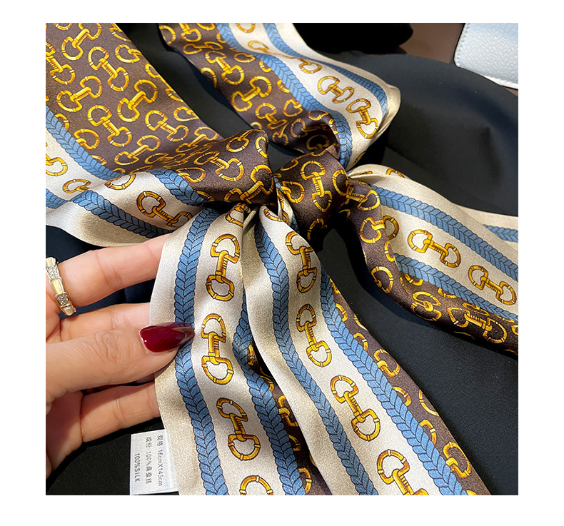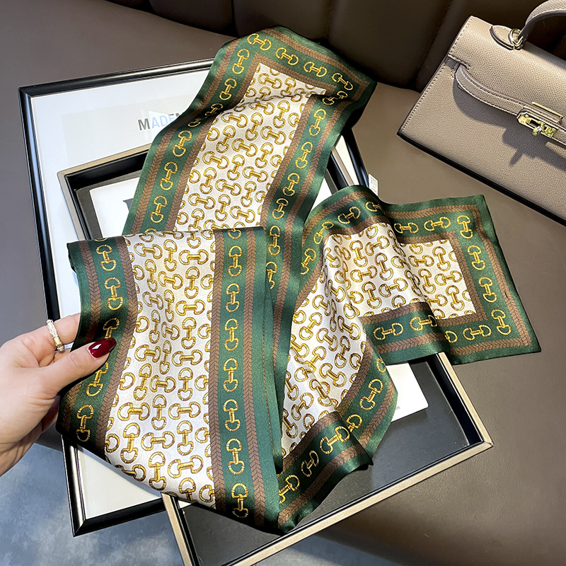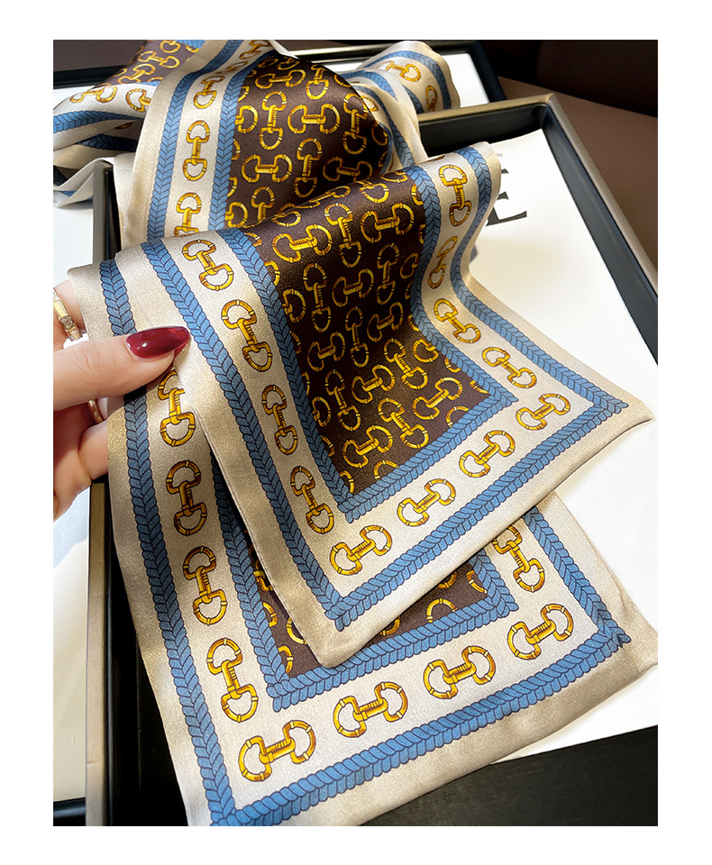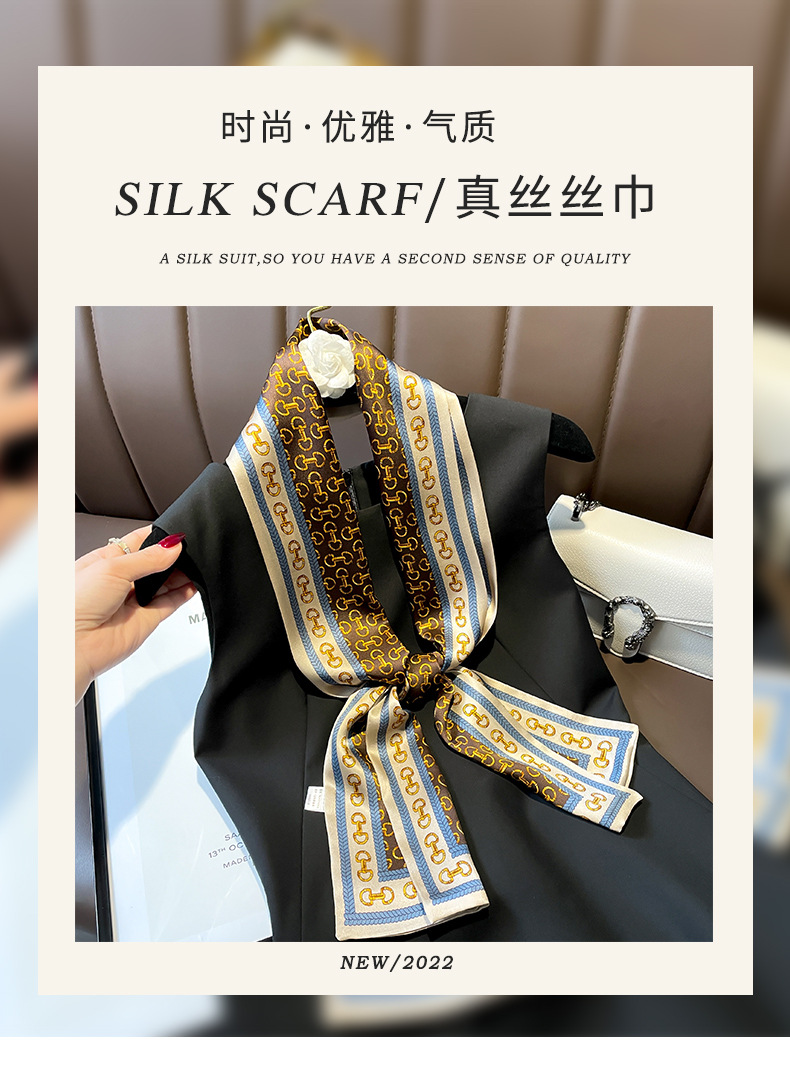 항저우 실크 여성용 봄과 가을 150*15cm 더블 레이어 실크 롱 타월 체인 패션 작은 스카프 화이트 칼라스토어 가기